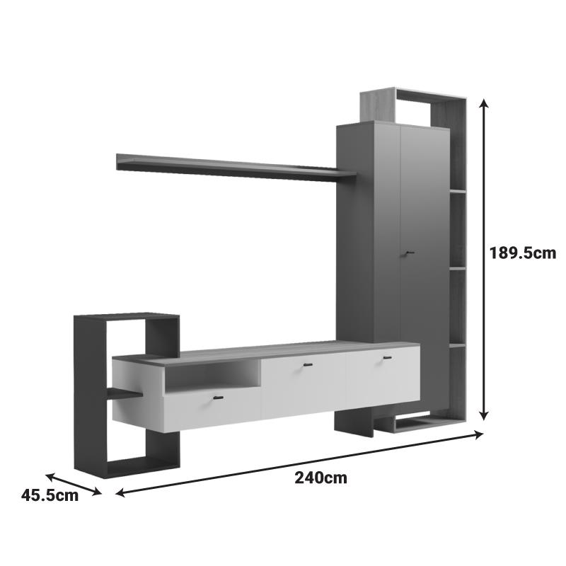 Σύνθετο σαλονιού Ferefia σε sonoma με λευκή και γκρι απόχρωση 240×45.5×189.5εκ