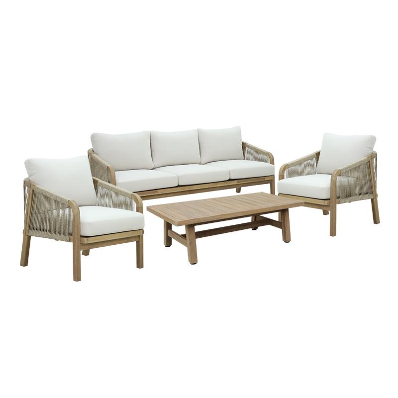 4pc Malibu I pakoworld living room set solid acacia wood-beige fabric