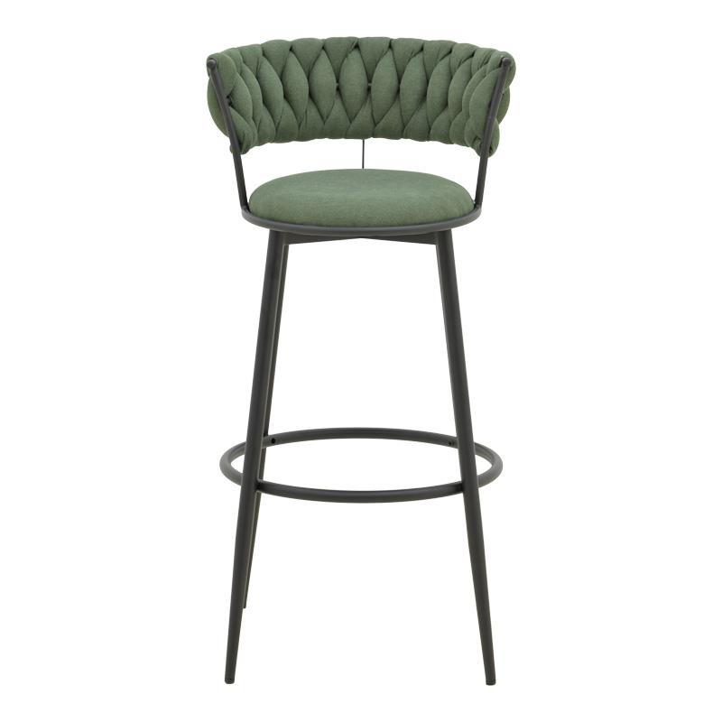 Elevate your space with the Alkia I bar stool, a perfect blend of elegance and comfort. The distinctive weave on the backrest adds an intriguing visual appeal, while the comfortable seat promises enjoyable moments of relaxation. Supported by slim yet sturdy metal legs with a matte black finish, the Alkia bar stool also features a practical footrest for added comfort.