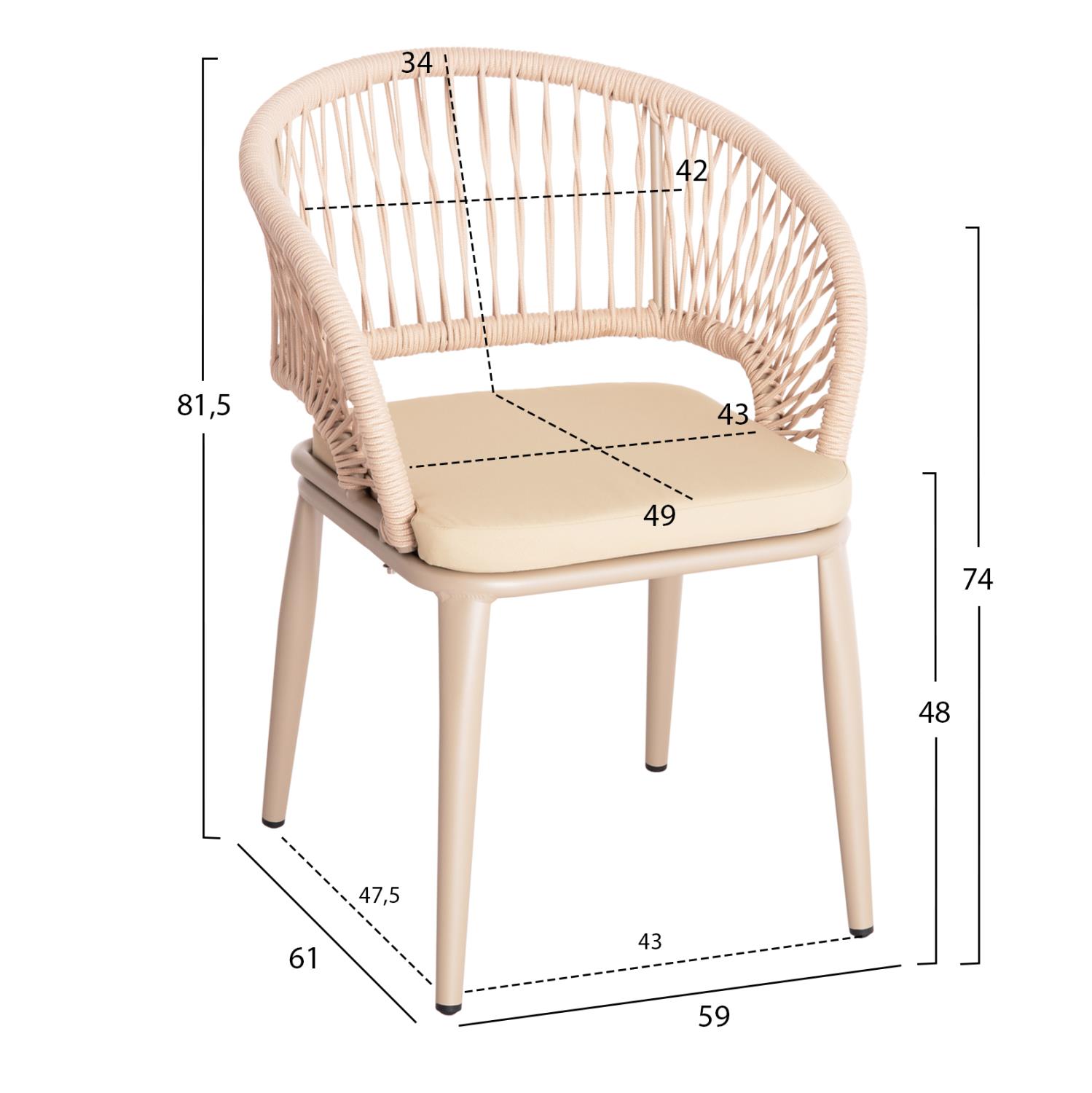 Καρέκλα - Πολυθρόνα MAGNET C6287.04 Γκρί Αλουμινίου με P.E. Σχοινί Καπουτσίνο 59x61x81.5Υεκ.
