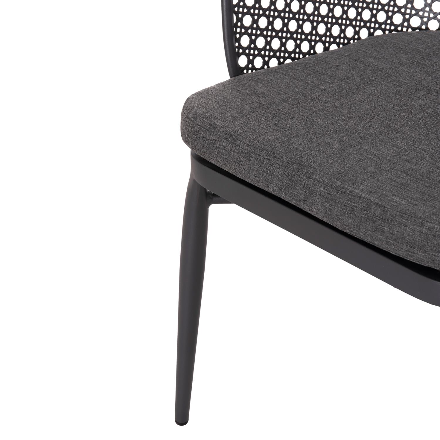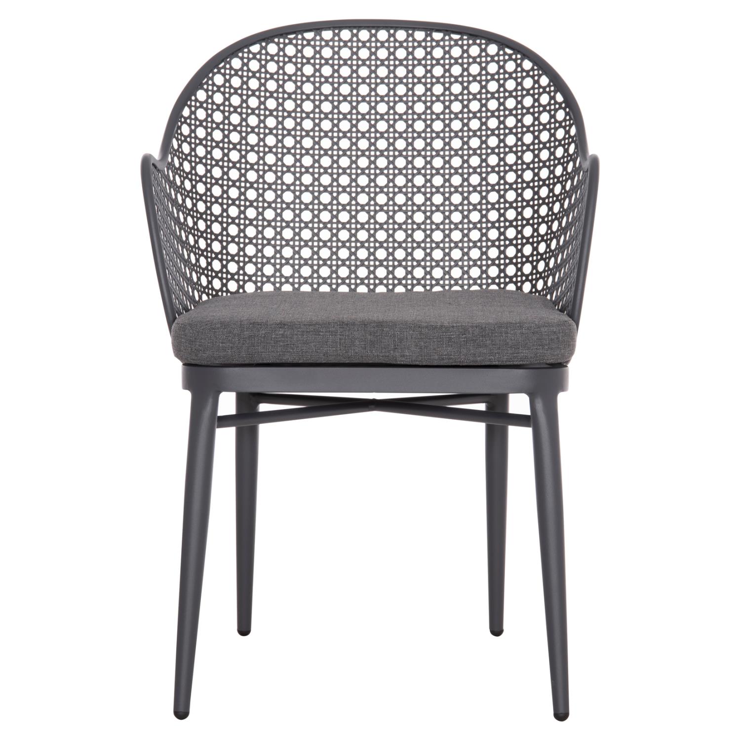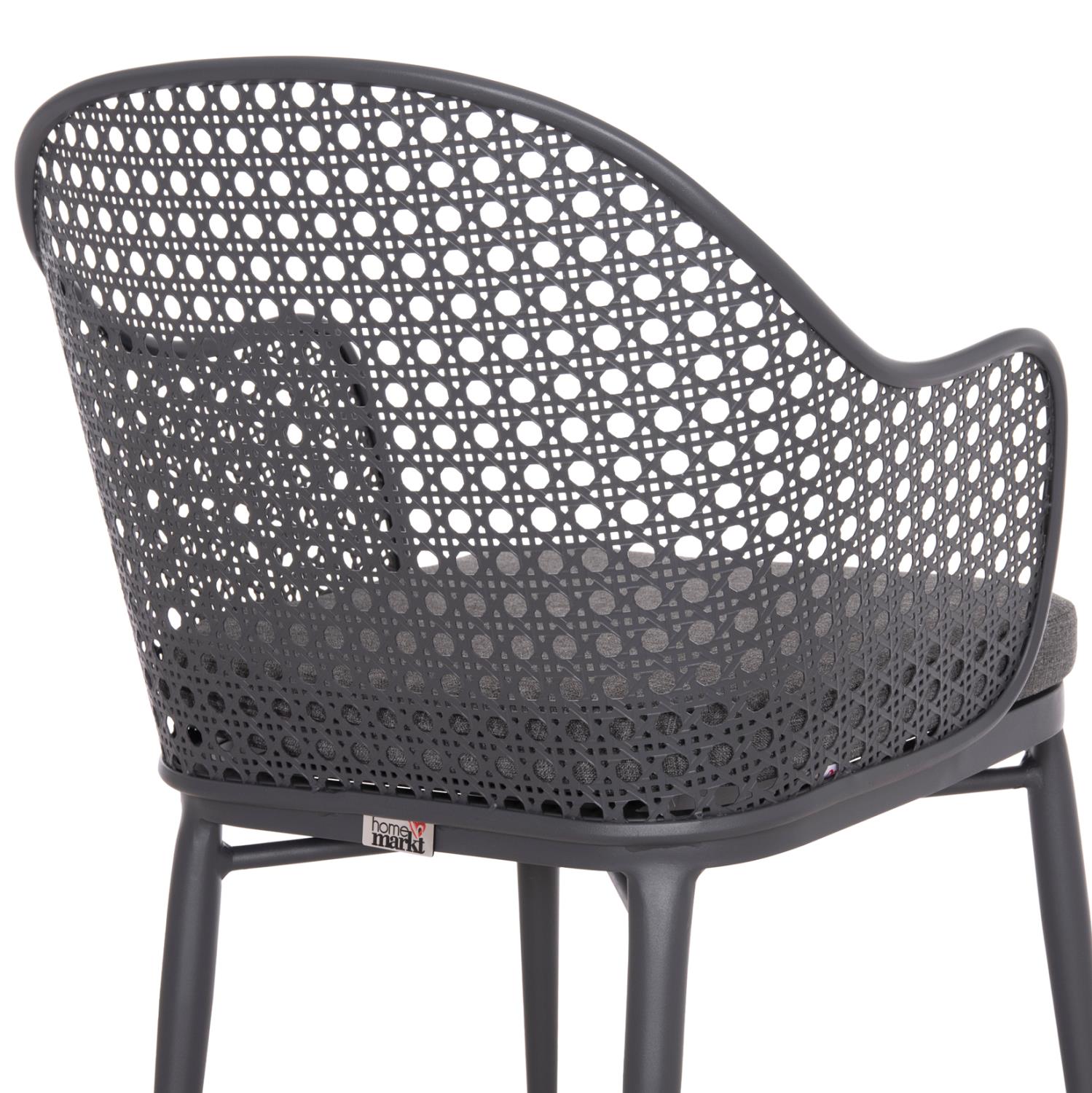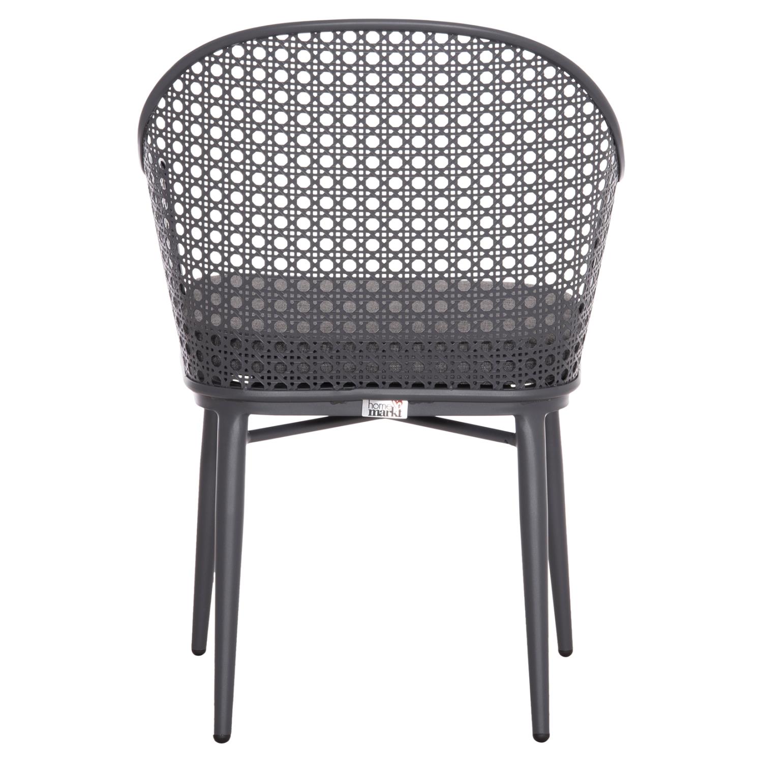 The OREGO aluminum armchair is a very special armchair for your outdoor space. The back is semi-circular and "perforated", while the cushion, which also has a zipper, is in a DARK GREY shade, like the rest of the armchair.
