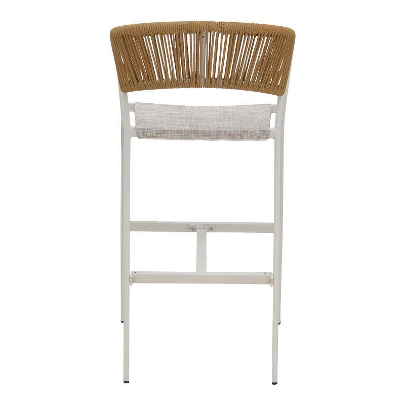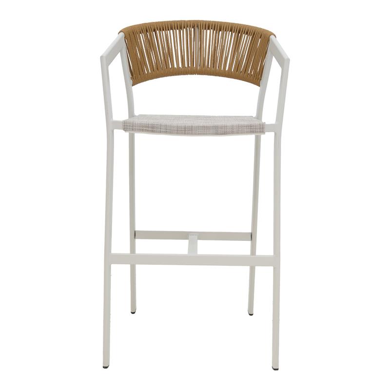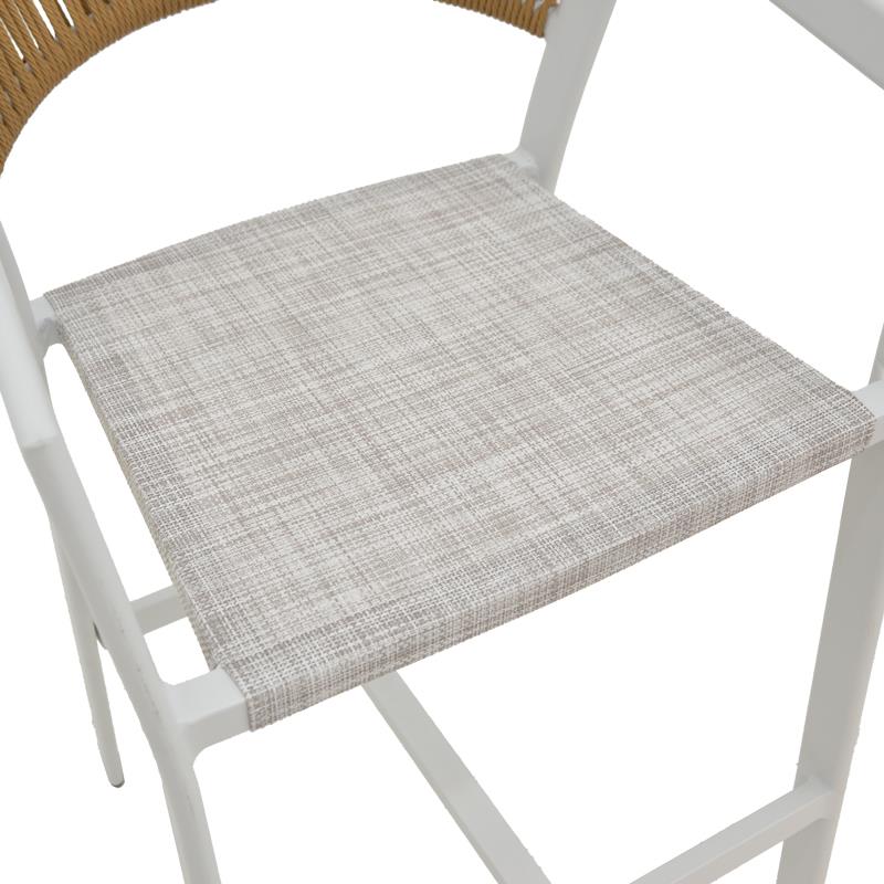 Aluminum bar stool Phoenix pakoworld stackable white frame-textilene natural rattan 53x58x103cm