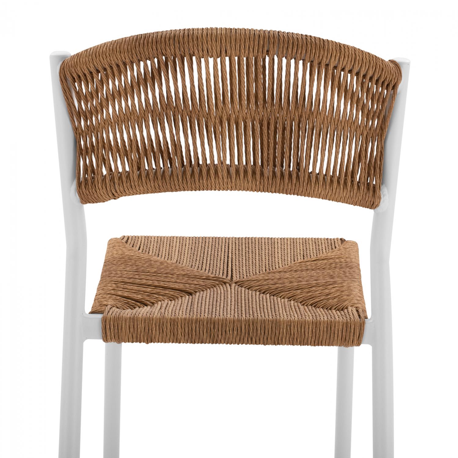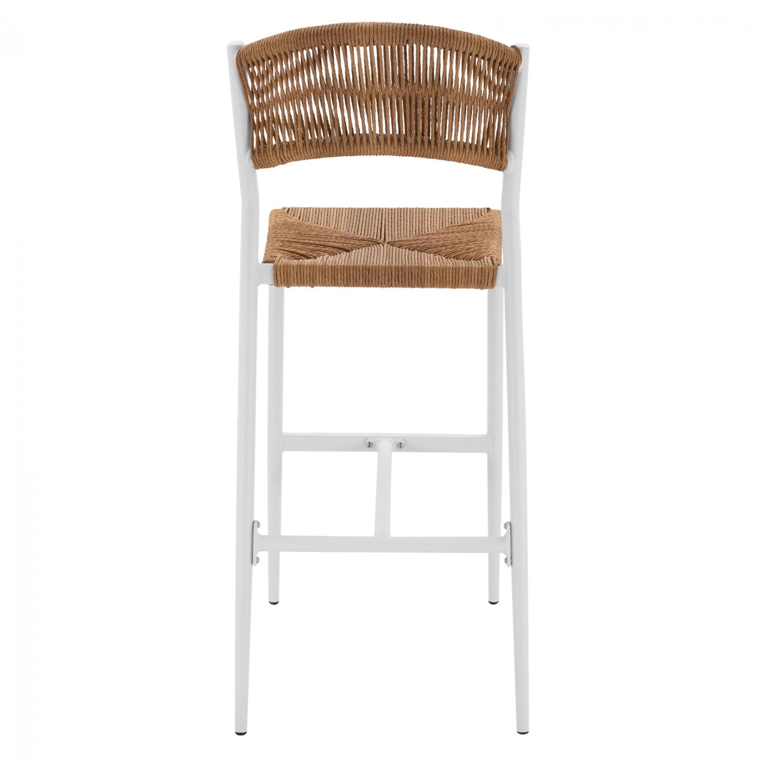 Modern bar stool C5789.01, made of aluminum frame in white, lined with knitted reinforced PE rope in the seat and back in beige.
