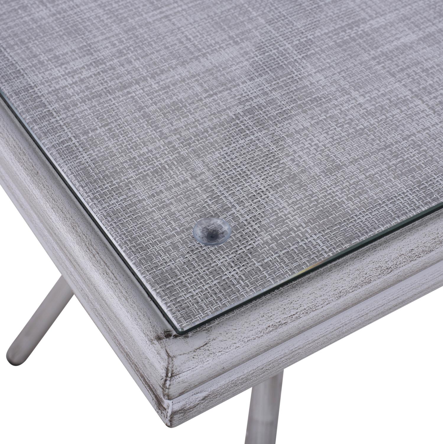 Bamboo look aluminum patina white 70X70 outdoor space with textilene on its surface and built-in glass.