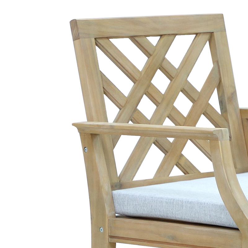 - Frame made of reinforced acacia wood. Acacia wood is hard and wear-resistant, making it suitable for furniture and outdoor use. It is known for its durability, the beauty that its natural color offers and its durability. It is widely used in the construction of furniture, floors, work surfaces and outdoor structures such as gardens and balconies.