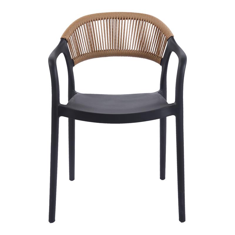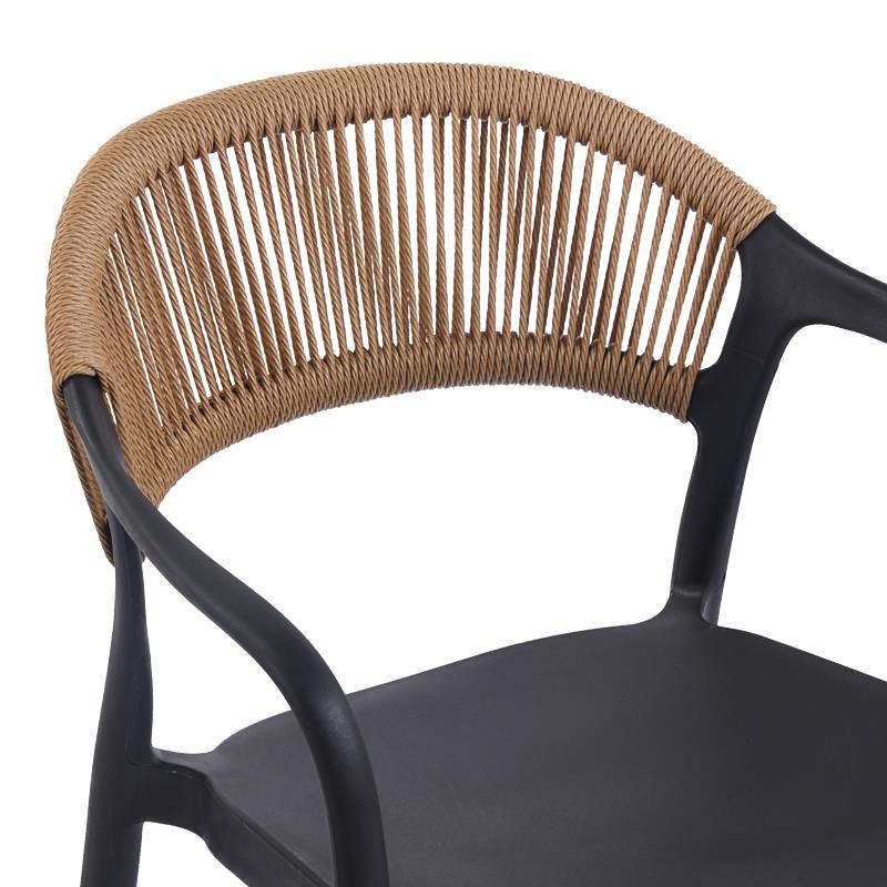 Chair-Armchair Ankara stackable pp in black color and natural color pe rattan 54x55.5x77cm