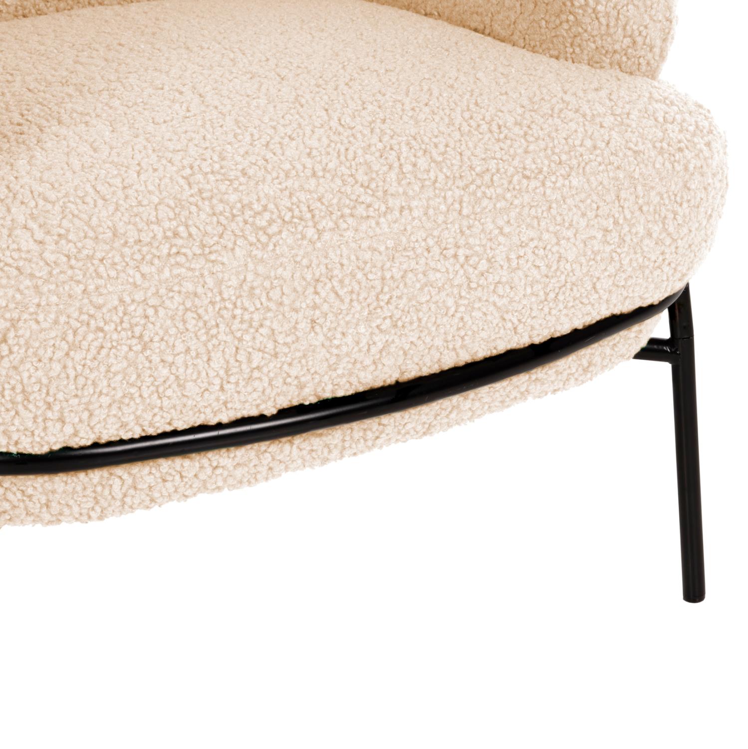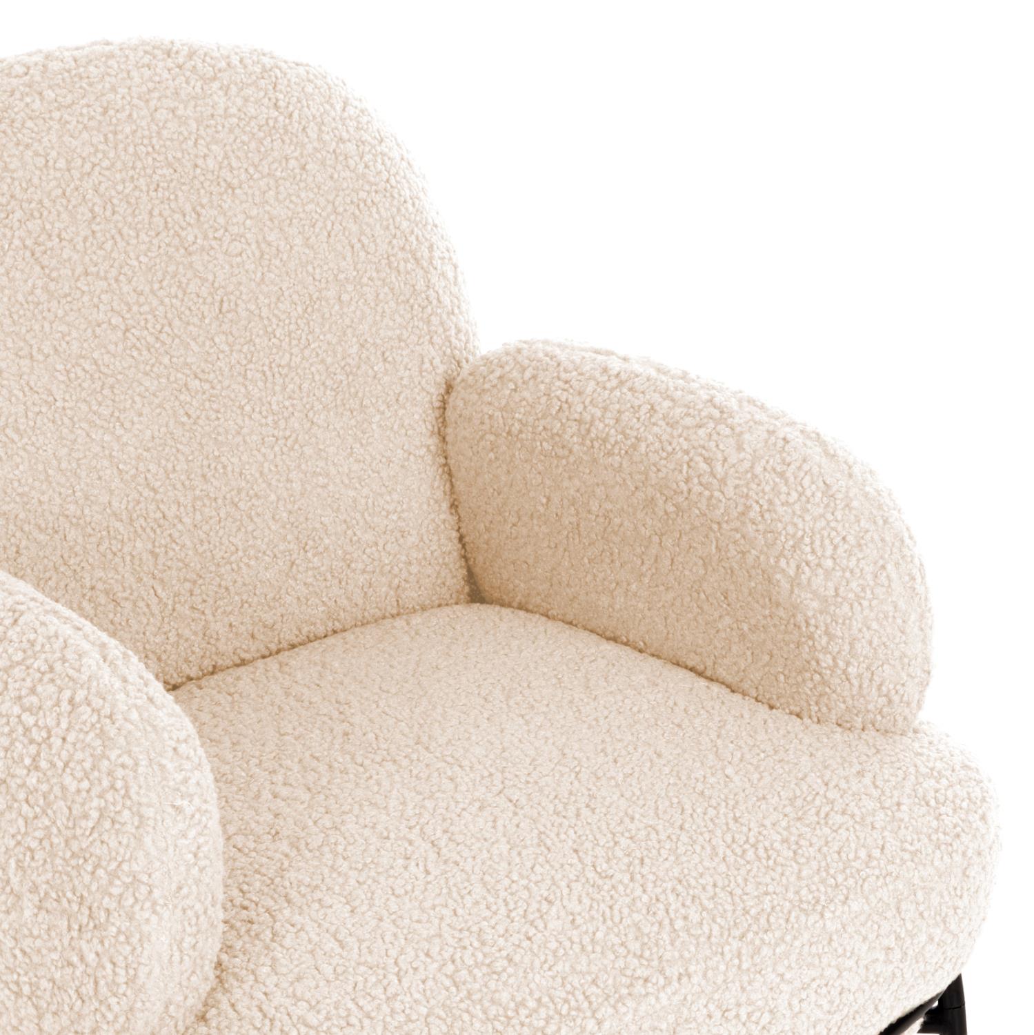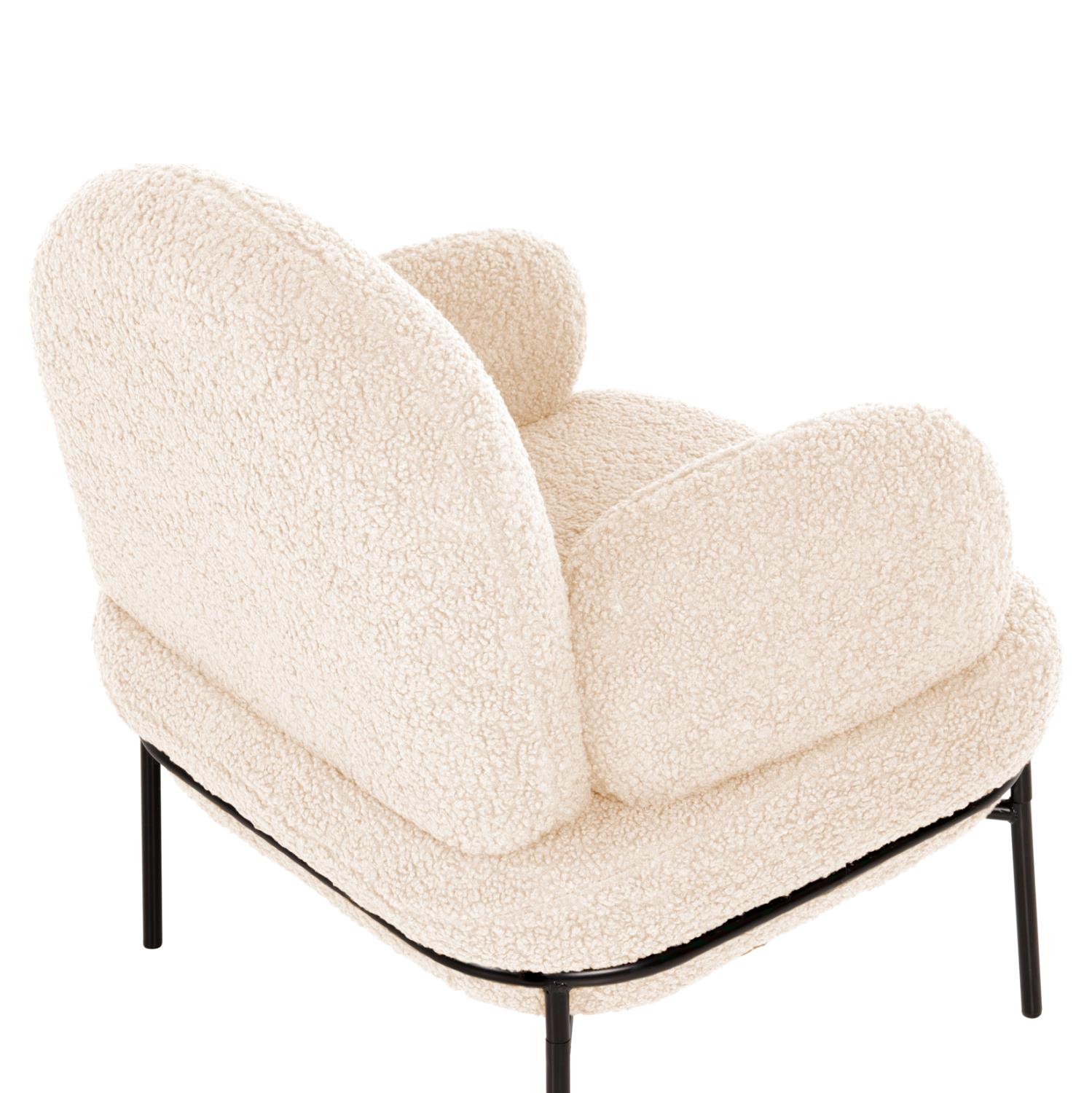 The AGNES armchair is modern and comfortable. The dominant color is WHITE, while the 4 legs are in black color. The upholstery of the armchair has been made with a warm boucle fabric that will give a different look to your space. It is an elegant proposal which will fit almost everywhere!
