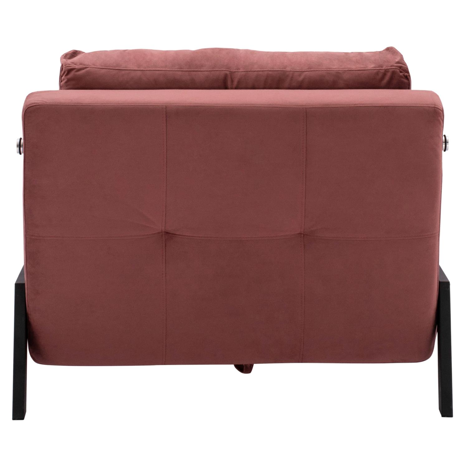 The CONSTANCE armchair-bed is the epitome of practicality and beautiful style. It rests on metallic black legs, while its entire lining has been made with DUSTY PINK velvet fabric, thus creating a beautiful two-tone coloring. The element that makes it stand out is that with a simple move it can be turned into a bed offering a quality solution for unexpected overnight stays, or even as a second bed in homes with limited space.