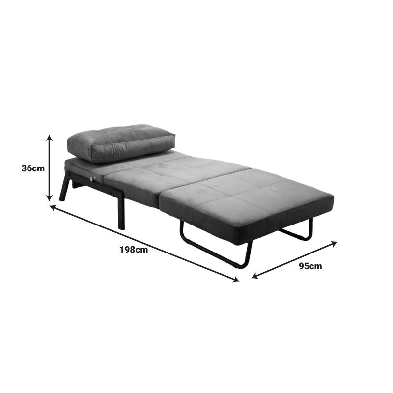 Πολυθρόνα-κρεβάτι Fancy ύφασμα βελούδο σε ανθρακί απόχρωση κα πόδι μαύρο μέταλλο 95x98x70εκ