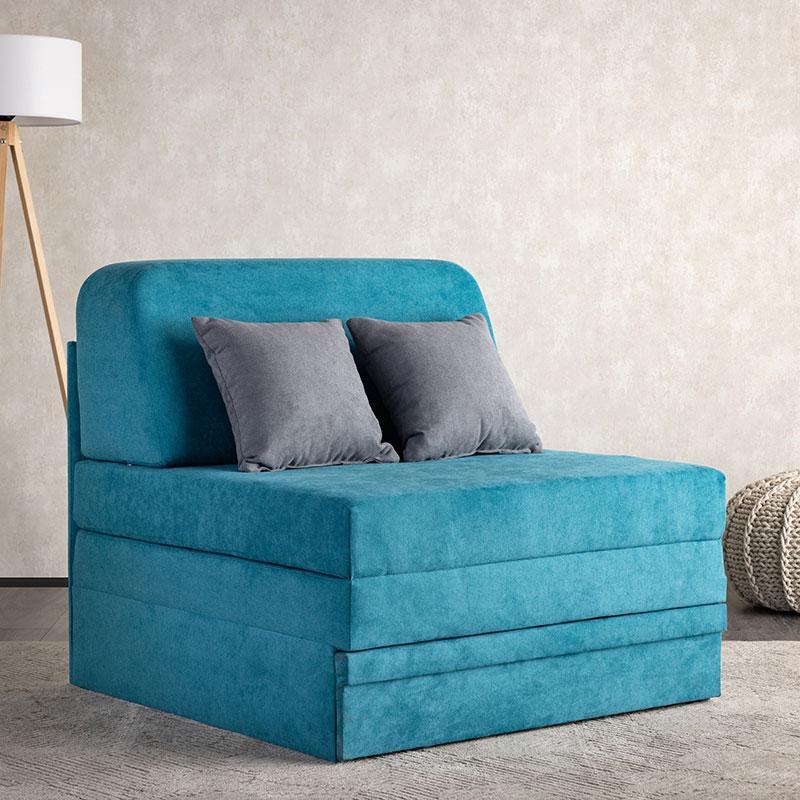 Choose an elegant and practical armchair. The Fantastico armchair-bed is ideal for small spaces and can be harmonized with any type of decoration. Its advantages are that with the folding mechanism it is easily and quickly transformed into a single bed! In fact, under its base, the armchair has a storage chest. Choose it in one of four impressive colors available in our collection and you will be a winner!