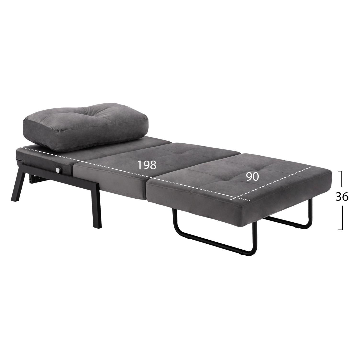 The CONSTANCE armchair-bed is the epitome of practicality and beautiful style. It rests on metallic black legs, while its entire lining has been made with GREY velvet fabric. The element that makes it stand out is that with a simple move it can be turned into a bed offering a quality solution for unexpected overnight stays, or even as a second bed in homes with limited space.