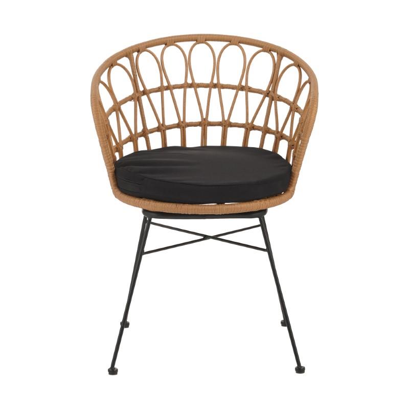 Felicia armchair pakoworld rattan natural-metal black leg Φ60x81cm