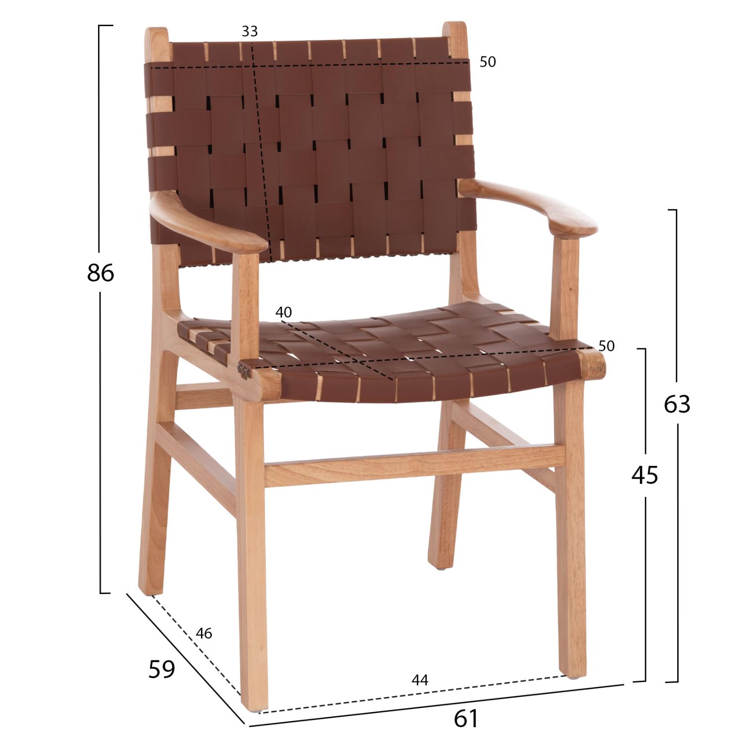 The FELIPE is a wide armchair of incomparable beauty. Its beautiful frame is made of quality wood, while both the medium-height back and the wide seat are made of high-quality square-knitted PU leather. The design lines of the armchair are elegant and focused on the comfort of the user. The wood has its natural color that can easily be combined with various decorative patterns, while the PU leather is BROWN. The armchair will be the center of interest wherever it is placed.