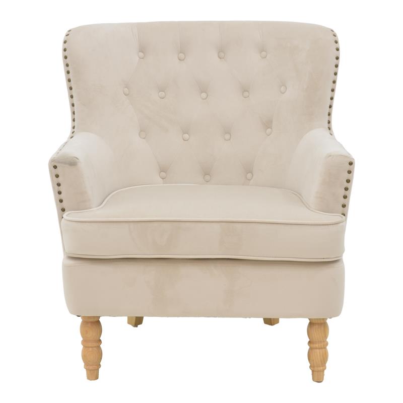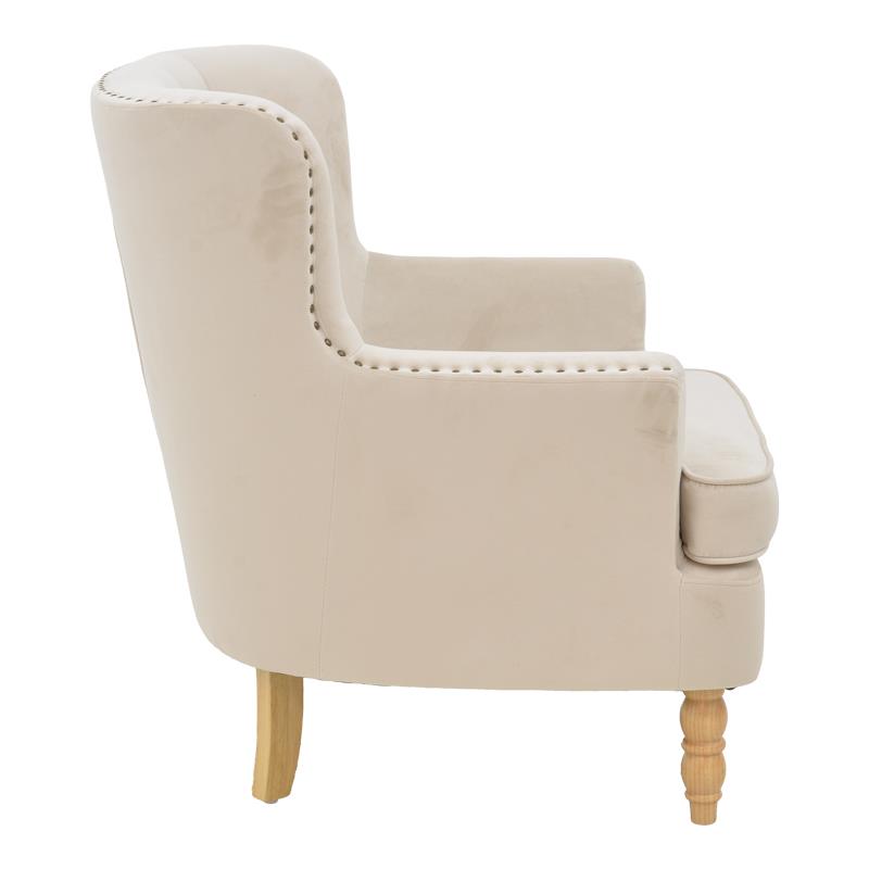 Armchair Keisi cream velvet-natural wooden leg 81.5x84x92.5cm