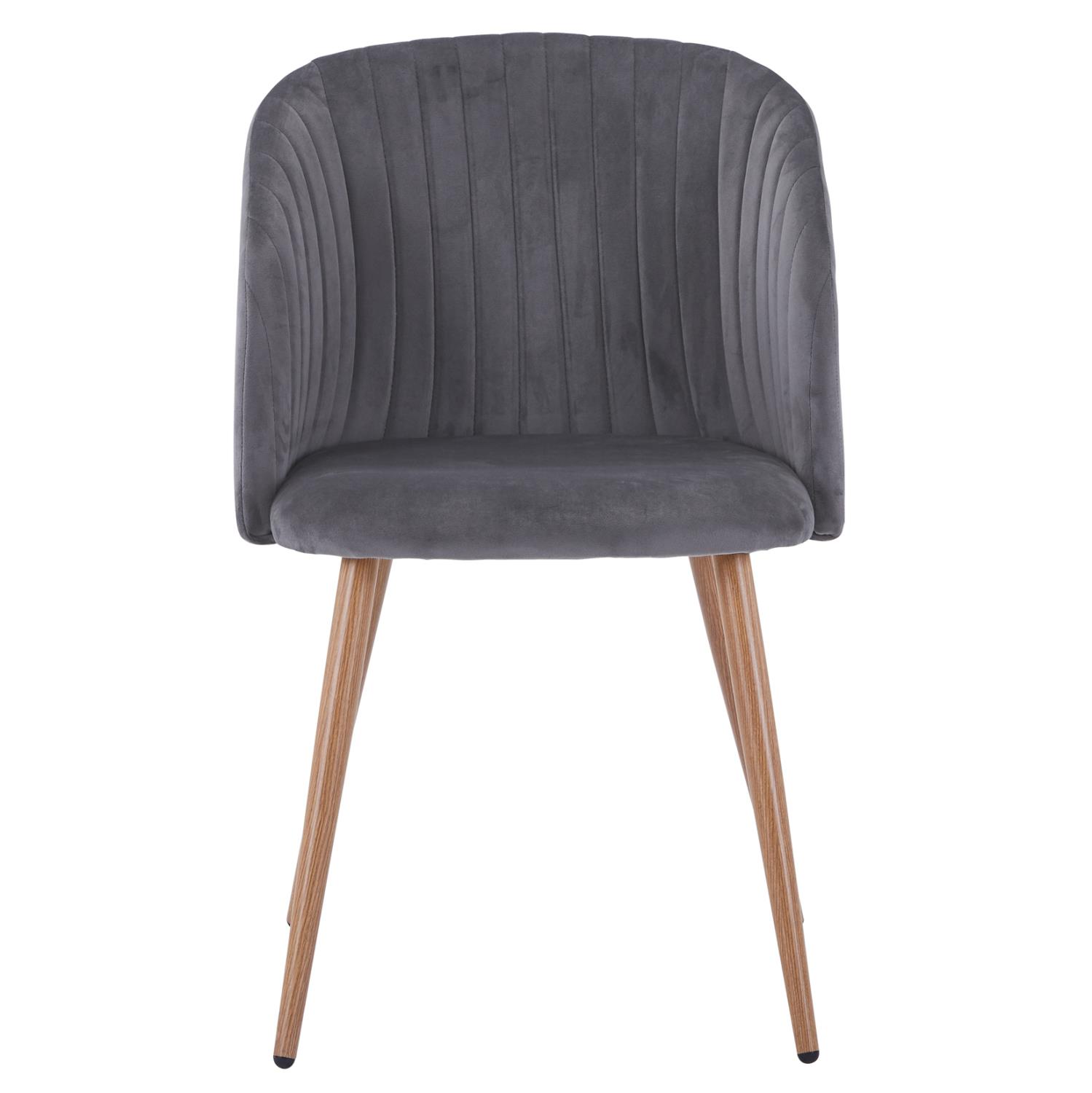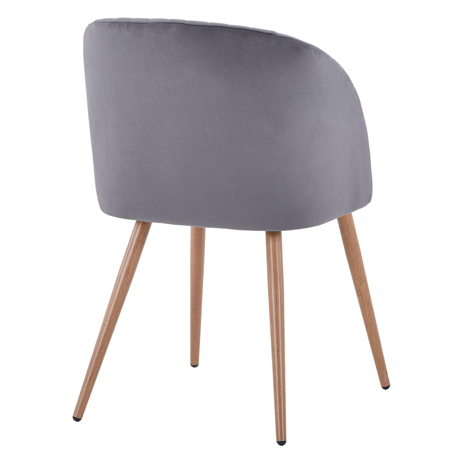 LEAH armchair with velvet armrest in grey. The legs are metallic, painted to give the appearance of wood.