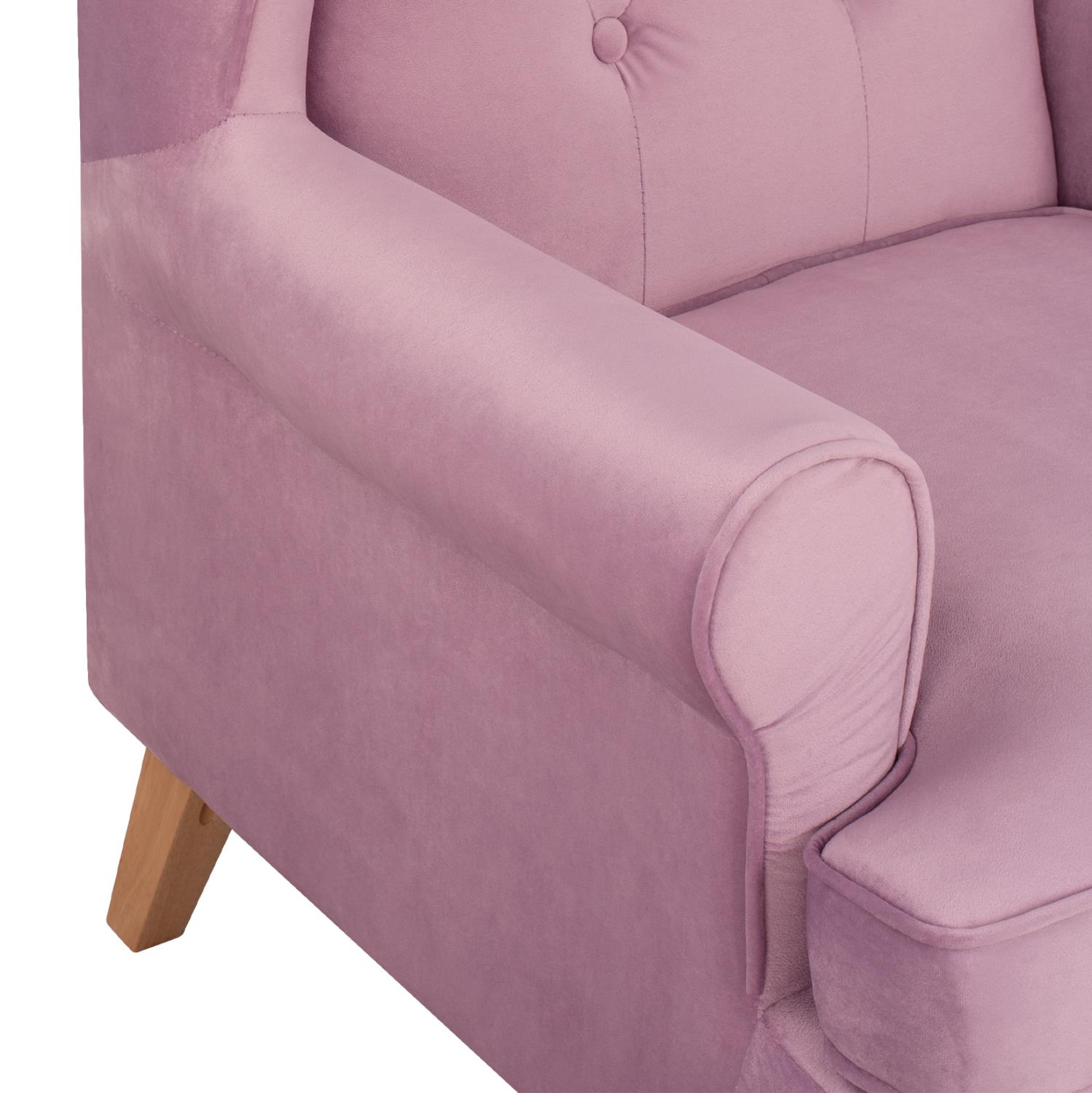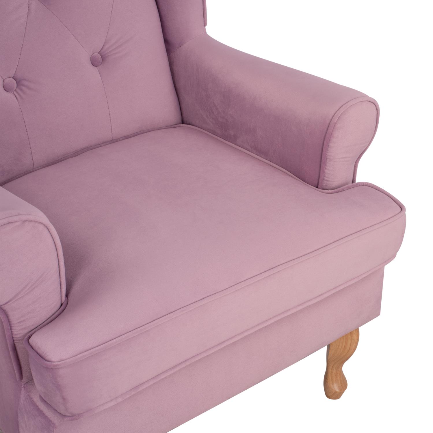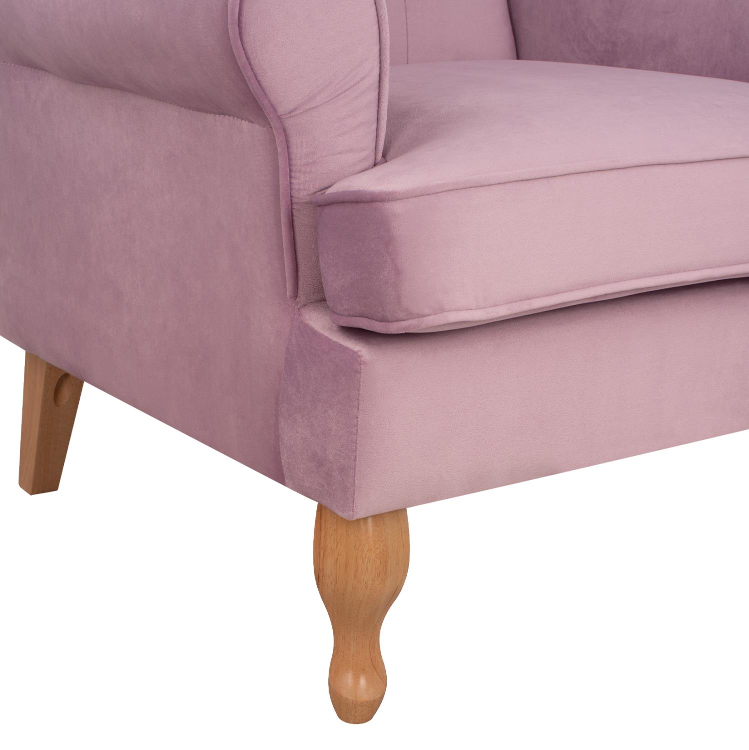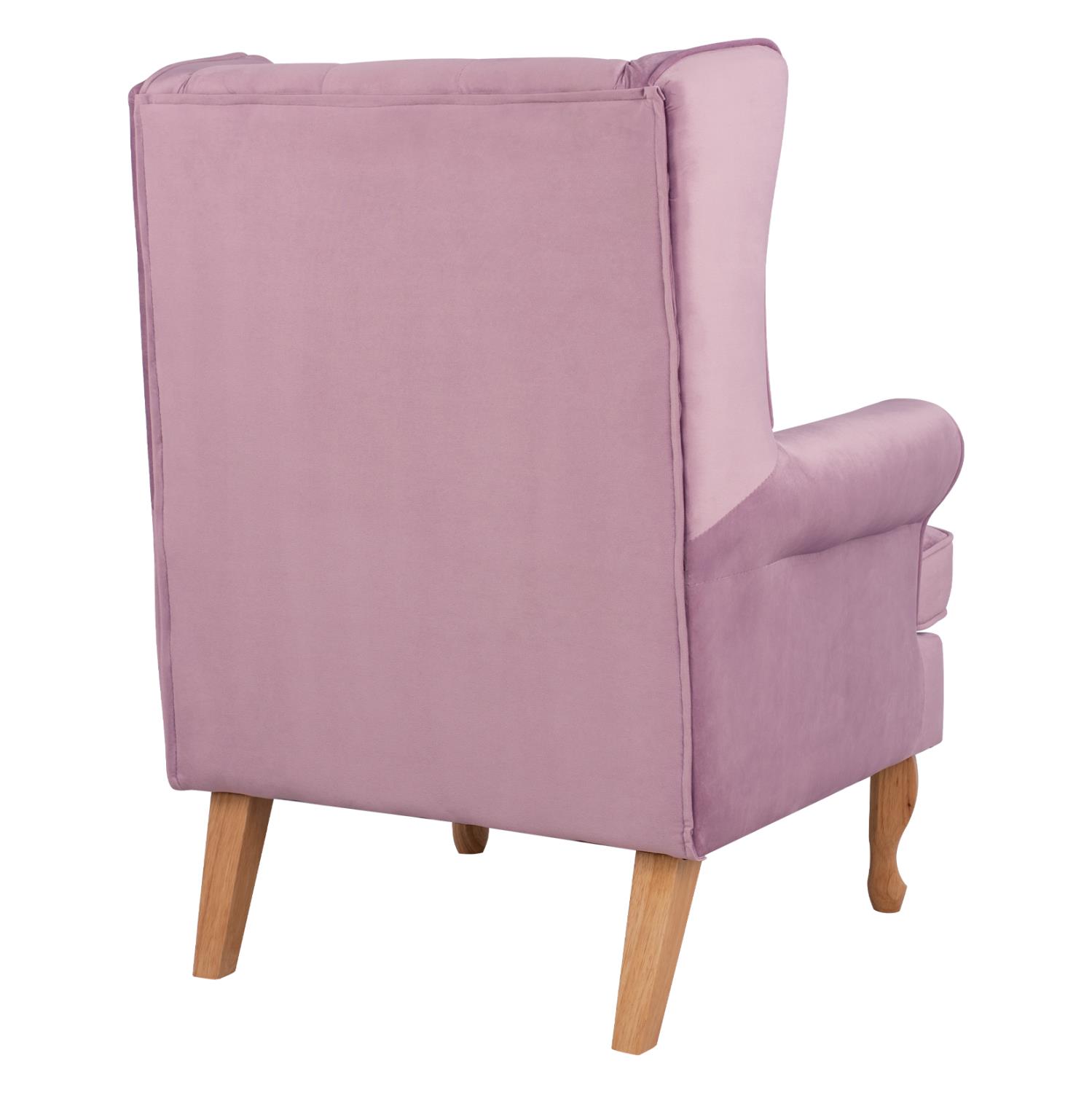 We present to you the BRANDON bergere, in a beautiful LILAC (lavender) color with wooden legs. The legs are in a natural color, and especially the front legs have a beautiful carved finish. The lining of the backrest has been made with a quilting technique that gives a special beauty to the bergere in combination, of course, with the high-quality velvet fabric. The arms and the seat are particularly comfortable in response to the character of the armchair.