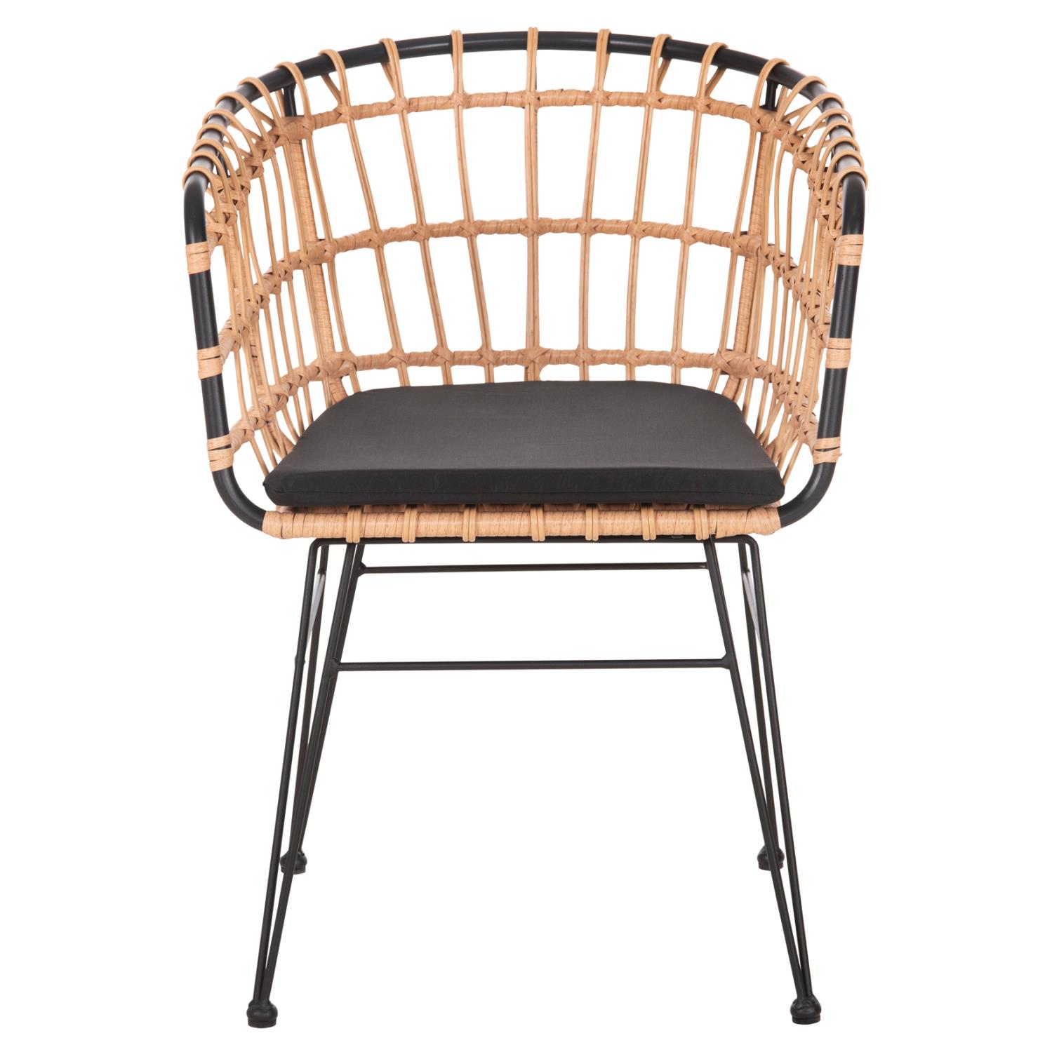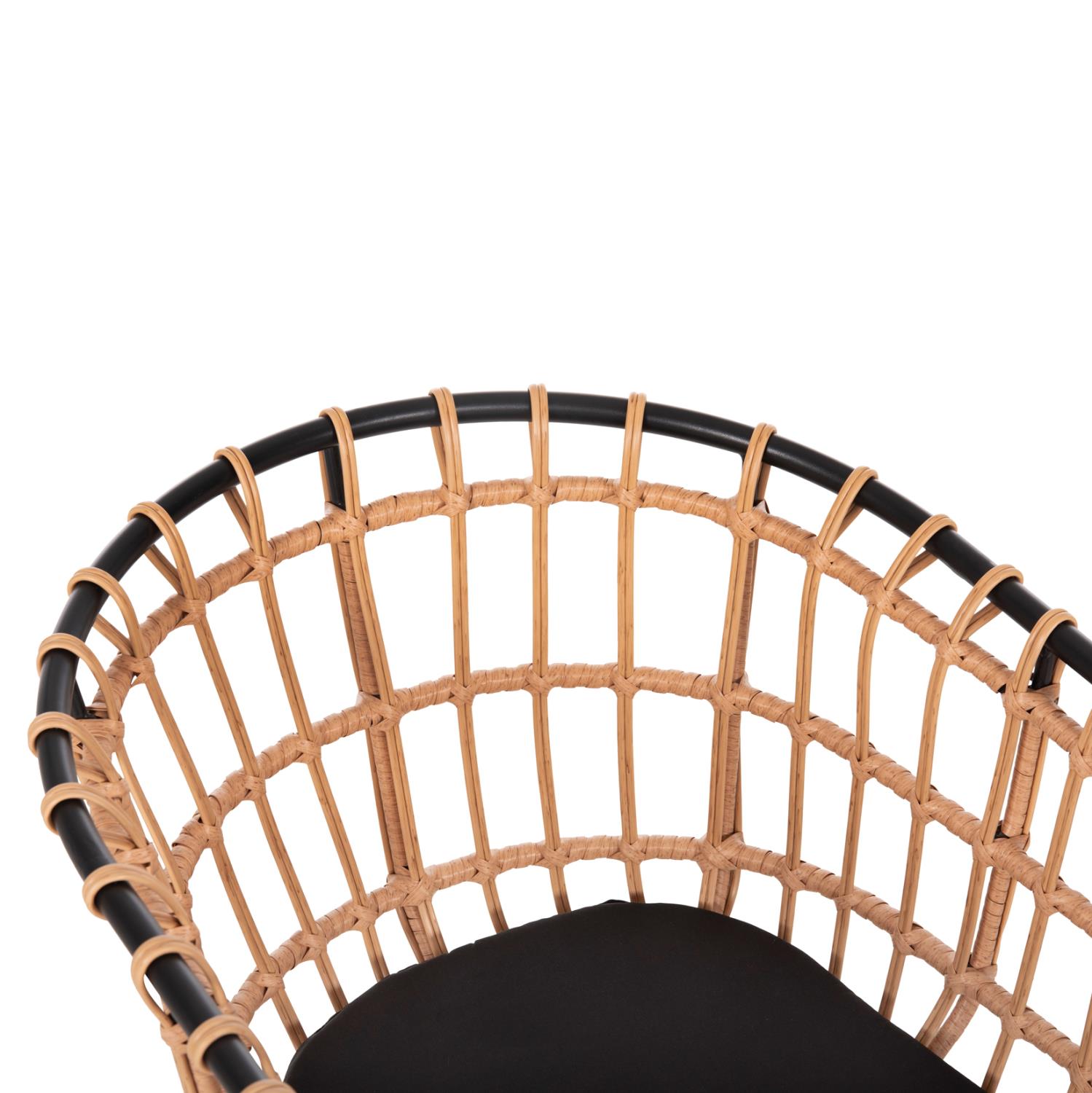 The ALLEGRA armchair is modern, comfortable, and stable! The design with the semicircular backrest which hugs the body with Wicker synthetic Rattan in BEIGE color will aesthetically upgrade the space you put it and will catch the eye. Also, the cushion comes in black coloring, just like the lower frame, sporting slipknots to tie on the frame, complementing this armchair in the best way.