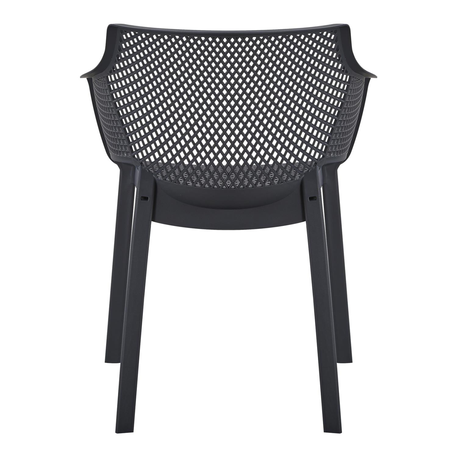 The PEGGY polypropylene armchair in BLACK is a classic choice for outdoor use, either professional since it is STACKABLE (banquet halls, catering companies, etc.) or for the home. It consists of a molded "perforated" seat-back-armrest assembly for better ventilation.