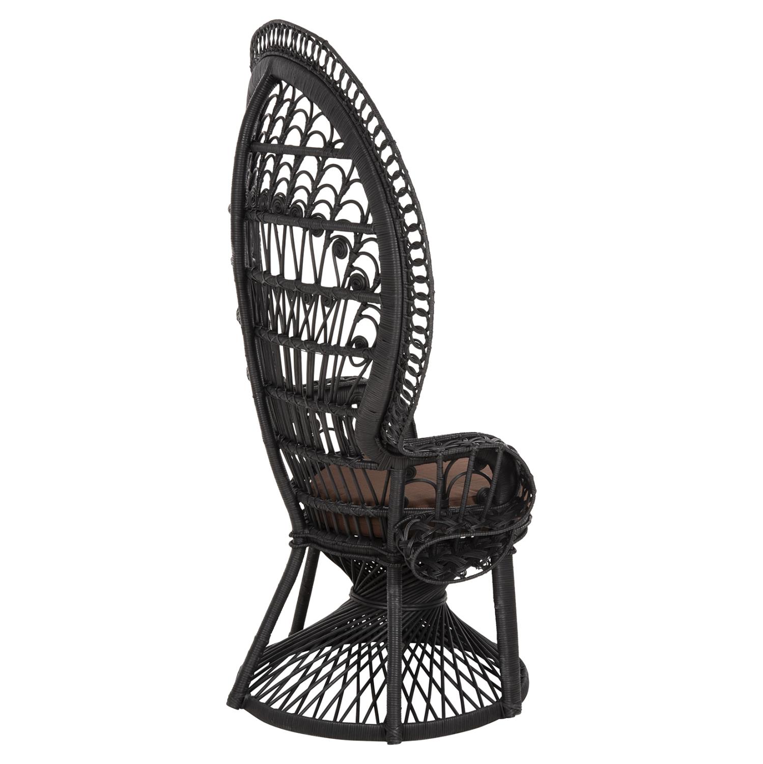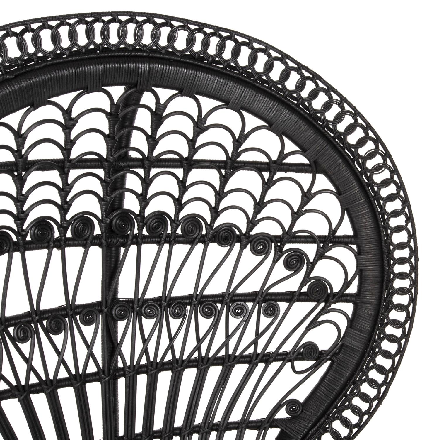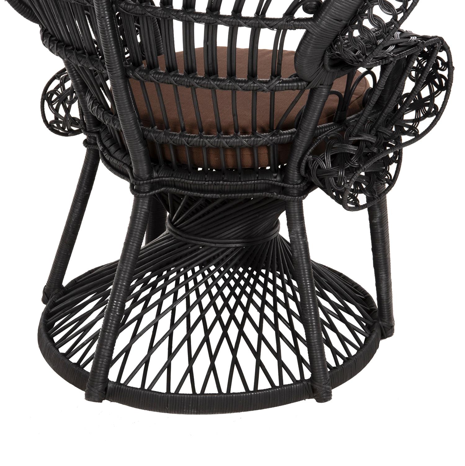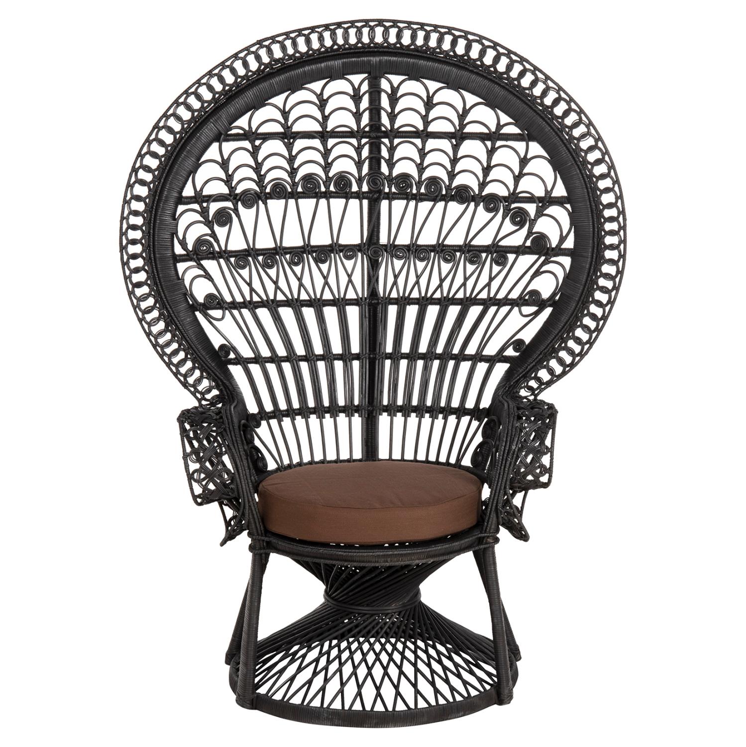 The ROYAL PEACOCK Rattan armchair, in BLACK color, is impressive and will certainly leave its mark in any living room where it is placed. Its seat with the BROWN comfortable cushion is round and rests on an impressive "knitted" cylindrical base. But even more impressive is the construction of the arms and back. The Rattan is masterfully woven creating beautiful designs and the dimensions of the armchair emphasize even more the art that exists in its construction!