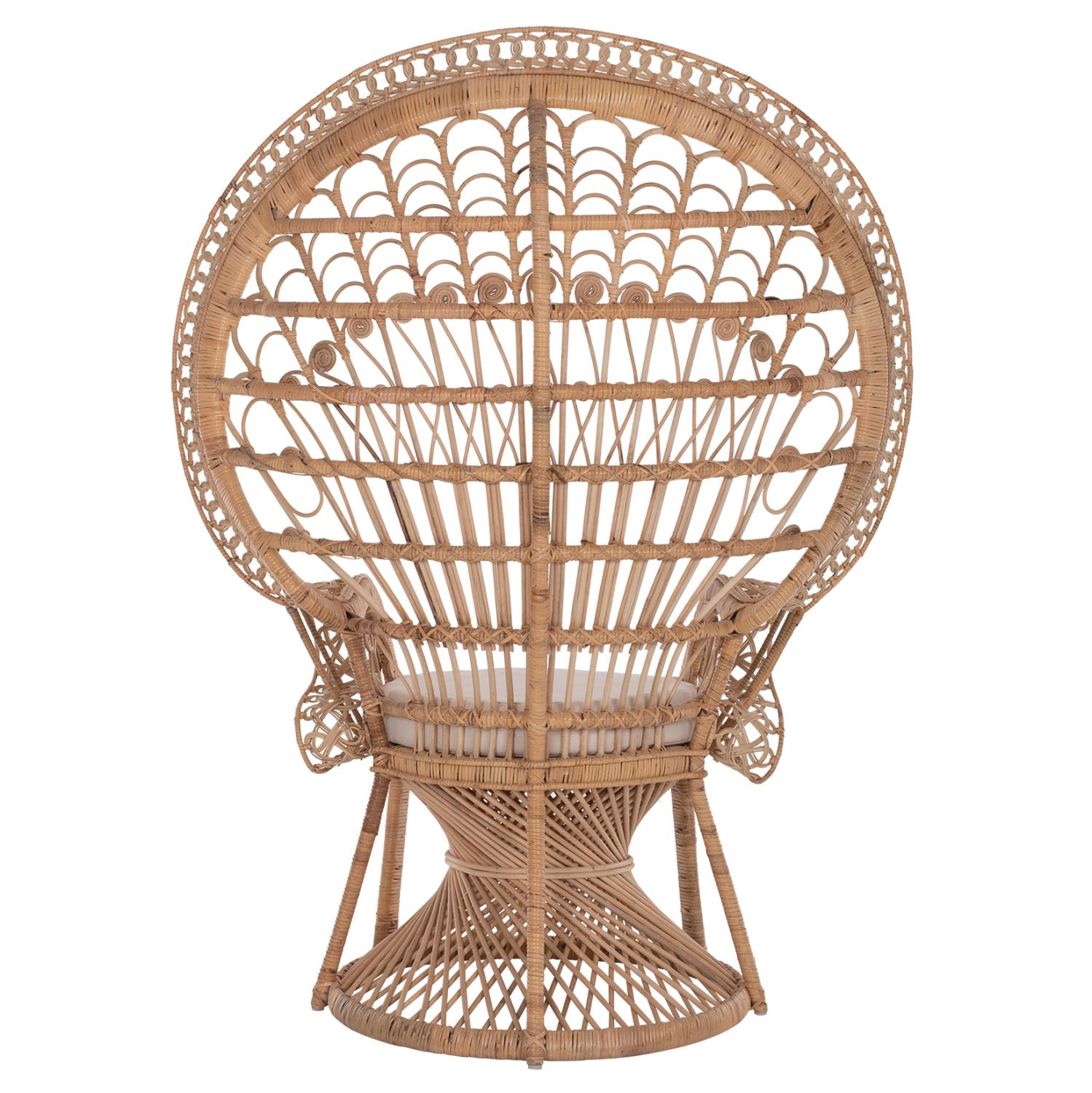 Chair – Armchair ROYAL PEACOCK C9342 Natural Rattan with Beige Cushion 114x72x150Hcm