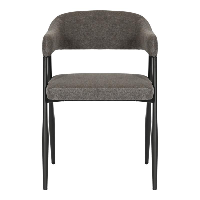 - The chair is supported by four black metal legs with high weight and wear resistance.