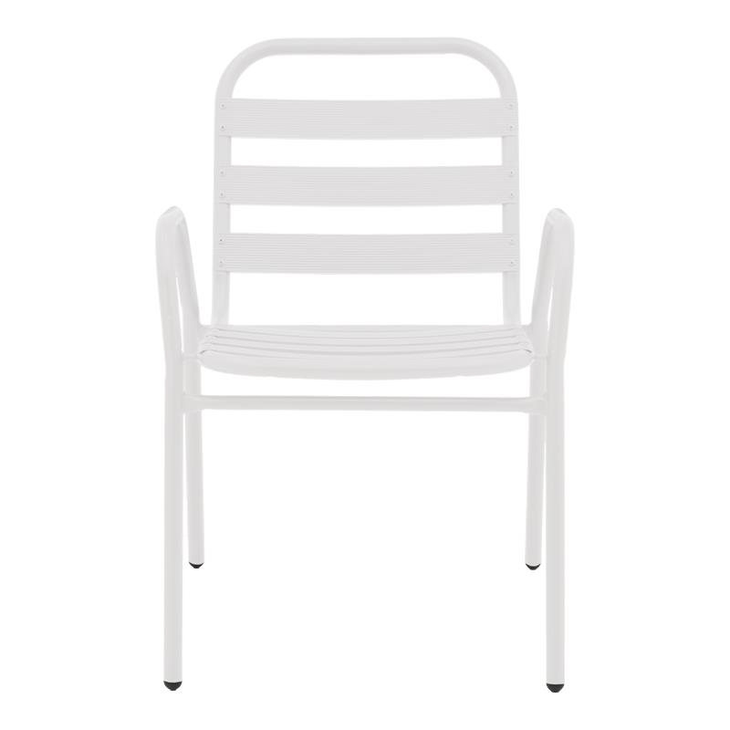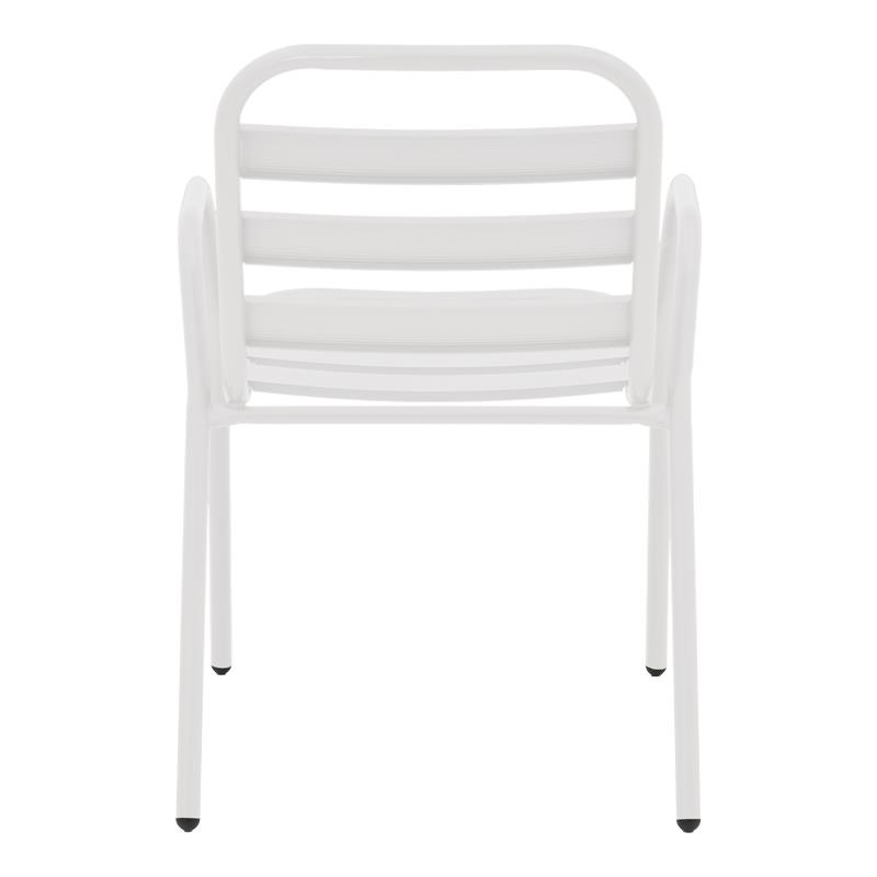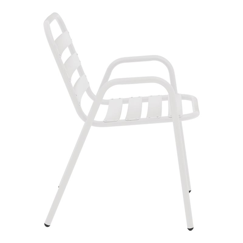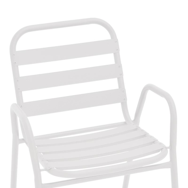 - Sturdy frame made of high-quality metal, resistant to wear and time, while the seat and backrest sections are made of aluminum slats. The metal provides durability and stability, while the aluminum slats add lightness and a modern touch to the design. This chair is ideal for outdoor use, as the weather-resistant properties of aluminum make it resistant to sun exposure and moisture.