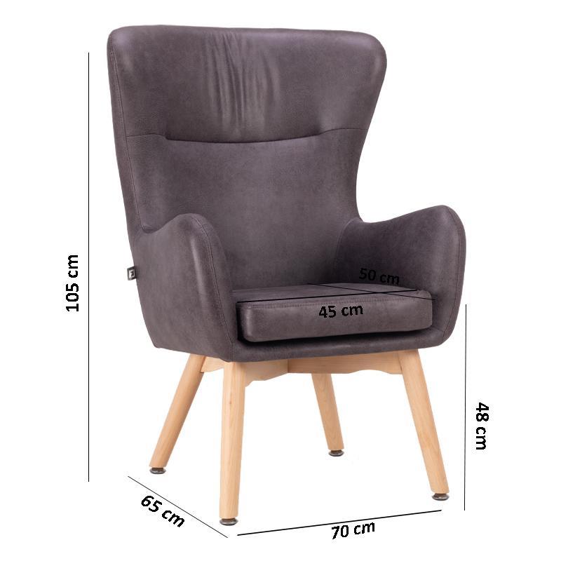 Armchair Thetis Fylliana Grey PU Leather 70x65x105 cm