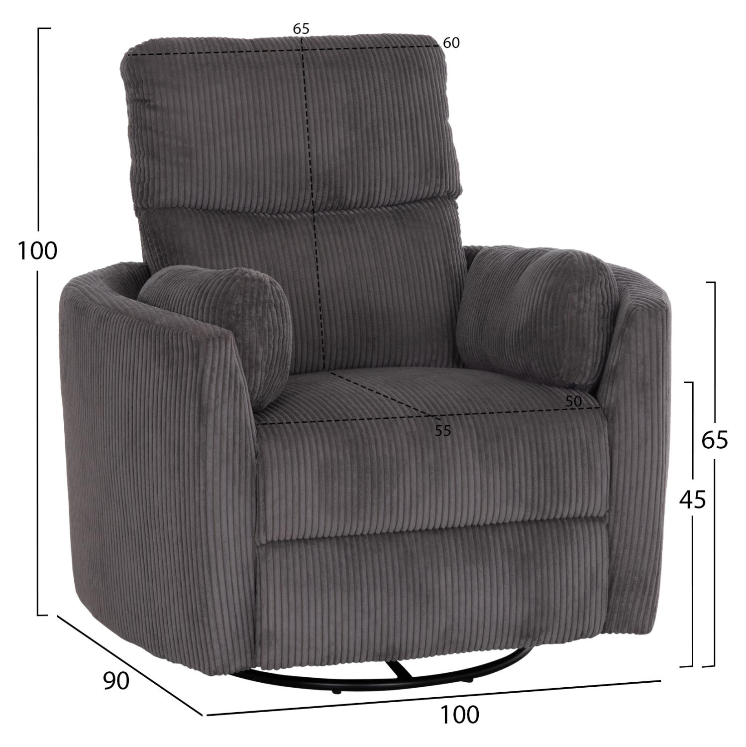 ARMCHAIR VELMORA RELAX Rocking in Grey Corduroy Fabric 100x90x100cm