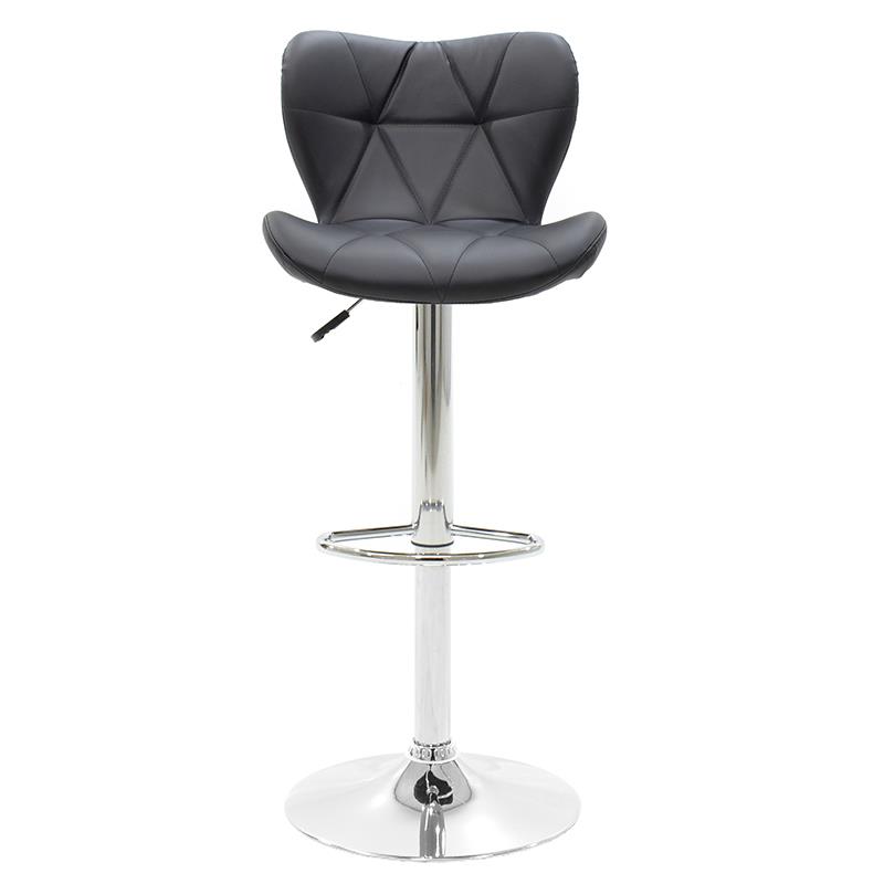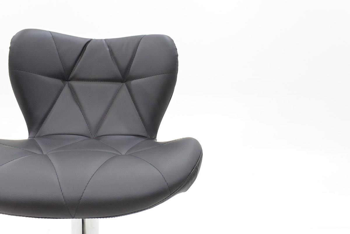Regarding modern glamour, the Coozy Bar Stool white will add a touch of class to your interior. Upholstered with cool grey pu-leather, the seat exhibits panelled stitch detailing for a distinctive feature that gives an eye-catching aesthetic. Displaying an encompassing flared design, the tall backrest lends a relaxed feel and dense padding throughout the seat ensures quality comfort. Sleek and slender, the black matte framework incorporates a variable height gas lift mechanism and a 360-degree swivel feature for easy accessibility. A round base with a protective guard roots the design, whilst the curved footrest mirrors the shape of the seat and provides extra support.