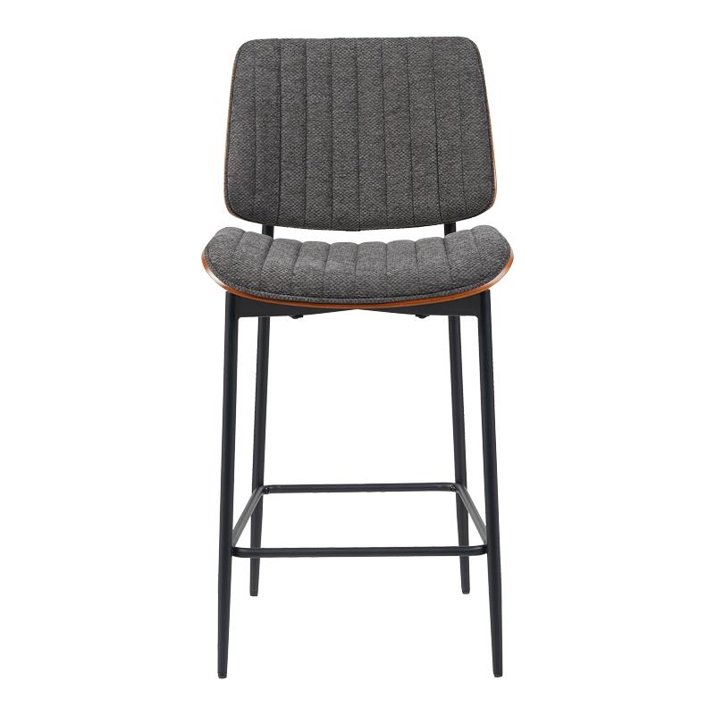 Bar-stool Kathy grey fabric-walnut metal legs 48.5x52.5x96cm