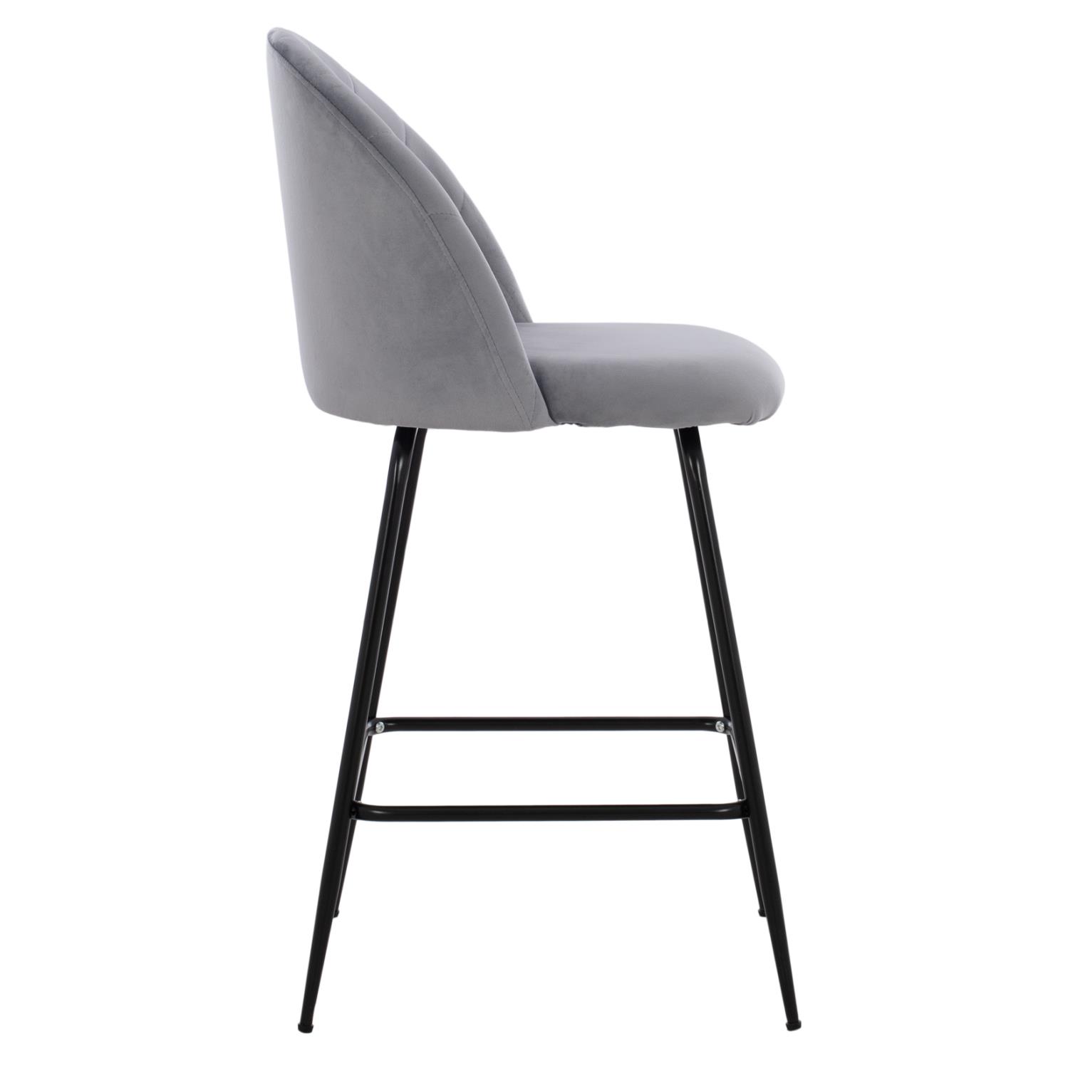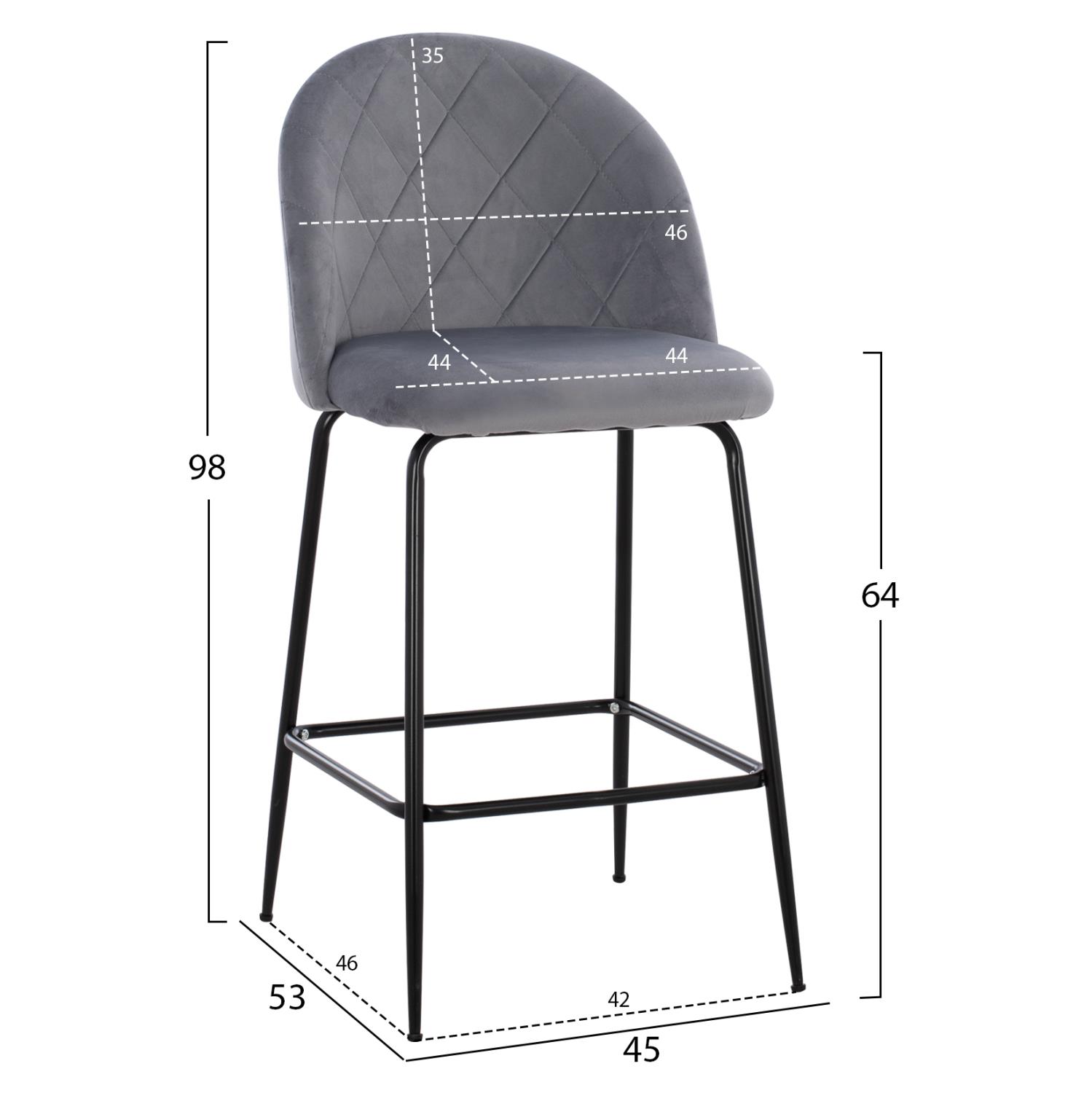Bar Stool ODED Medium Height with Metal Legs Velvet Grey 45x53x98cm.