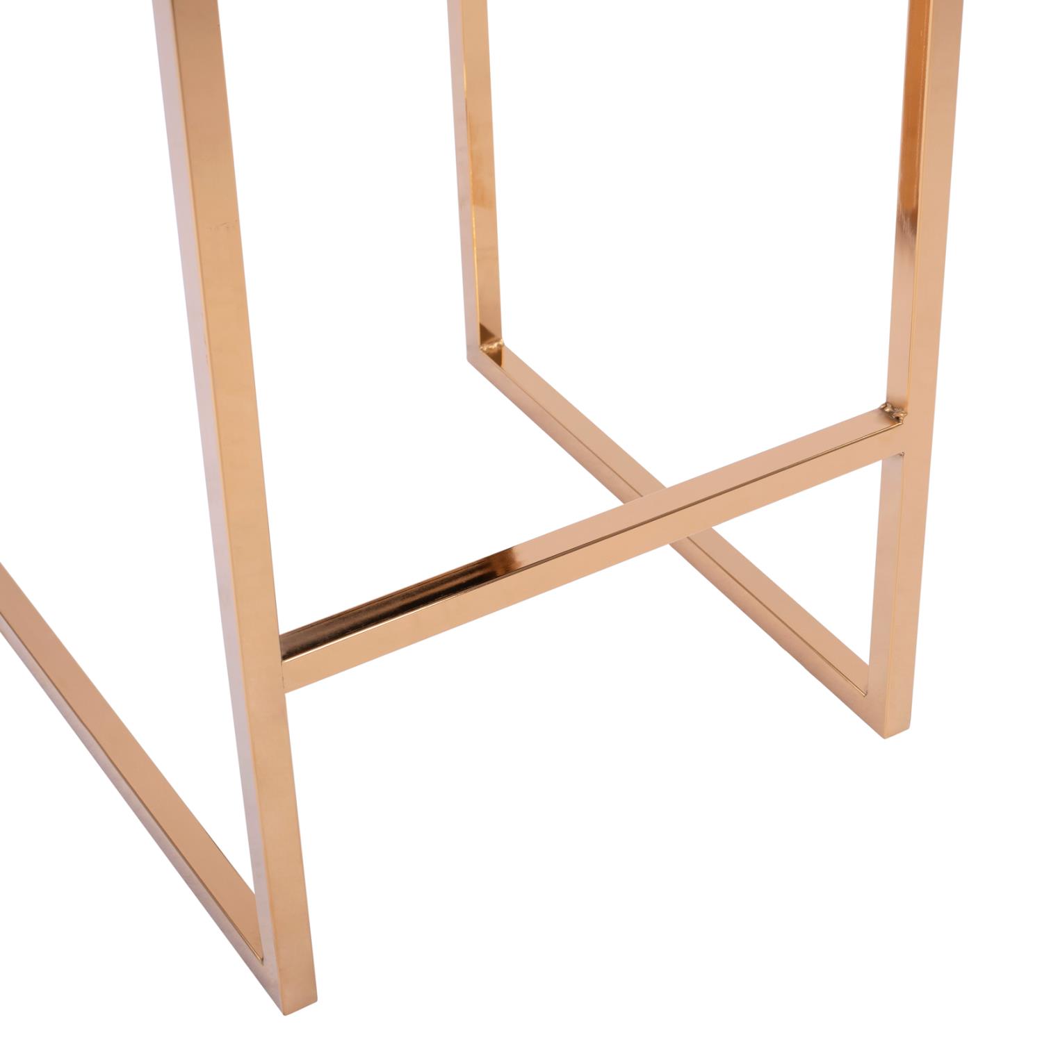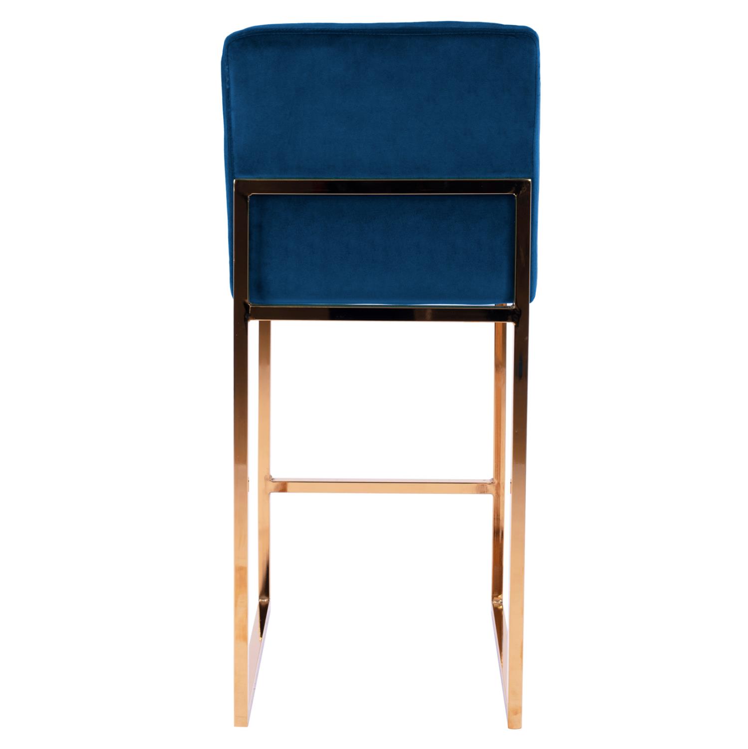 The PIPER stool is made of metal in gold, and velvet in blue,