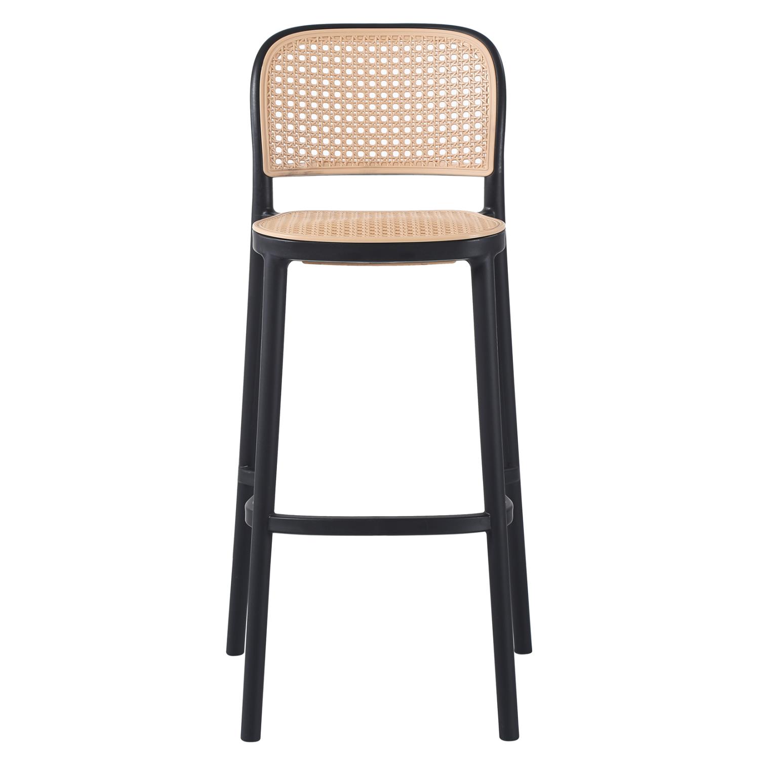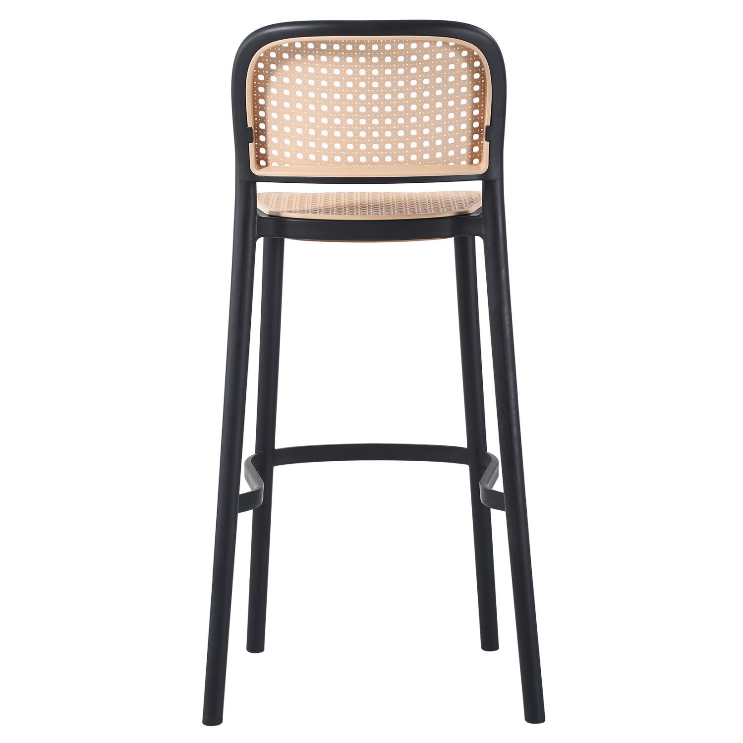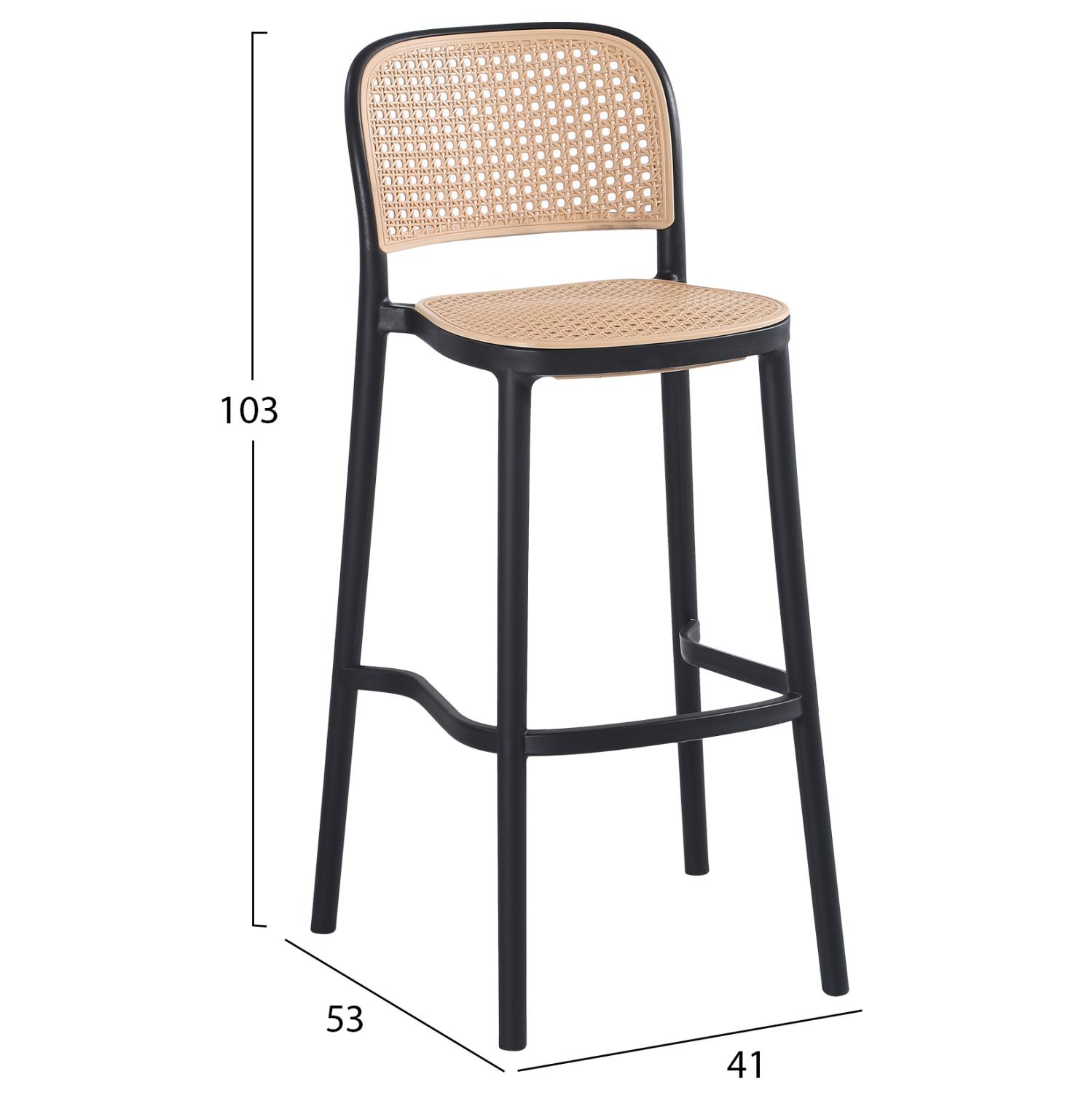 The entire stool is made of one-piece polypropylene in BLACK color with a relatively low back which is in polypropylene "mat" style, as is the seat, in BEIGE shade.