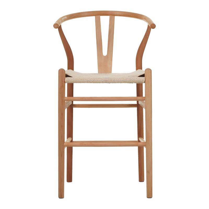 Σκαμπό μπαρ Wishbone rubberwood-σχοινί σε φυσική απόχρωση 55x49x108εκκ