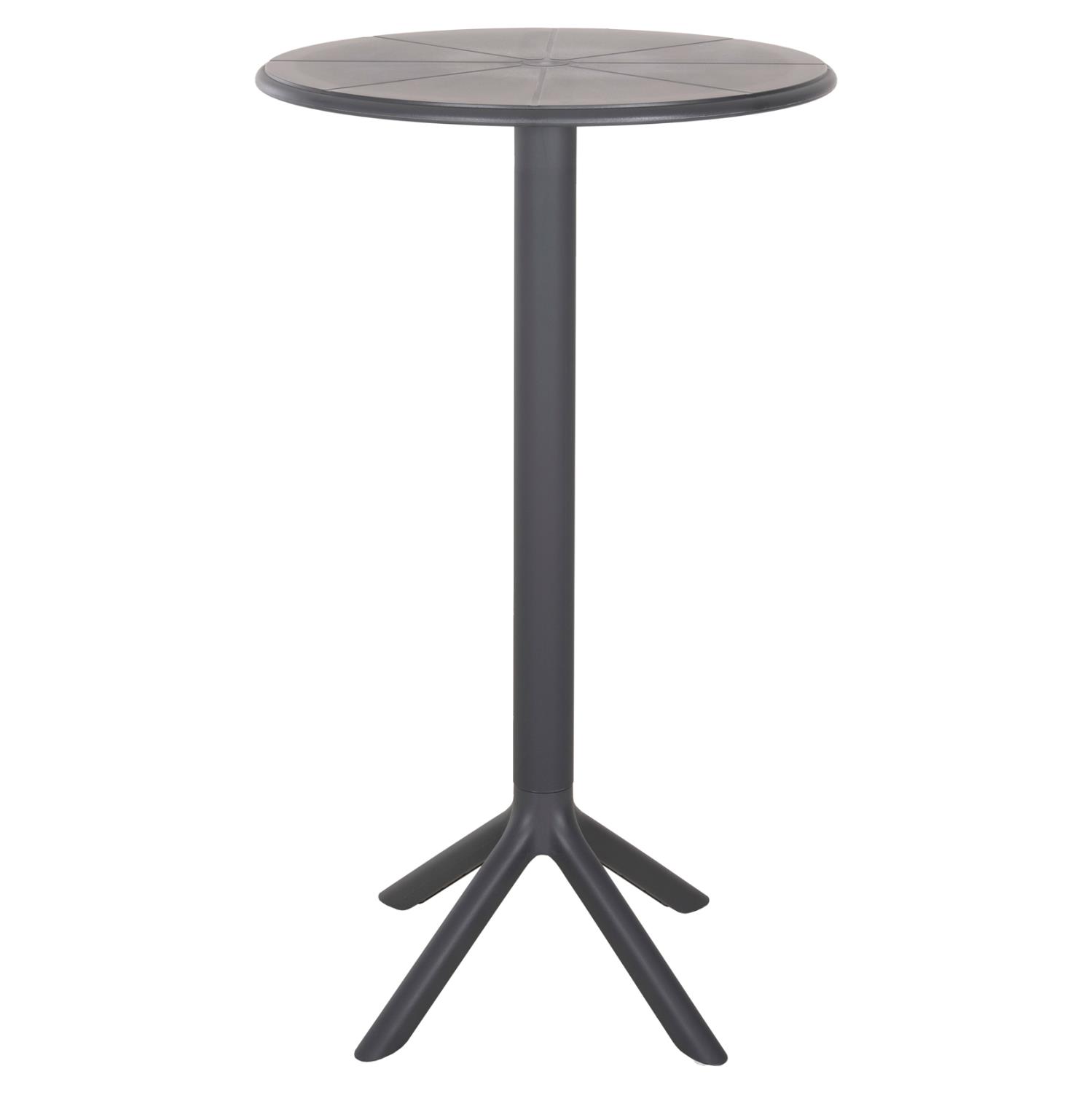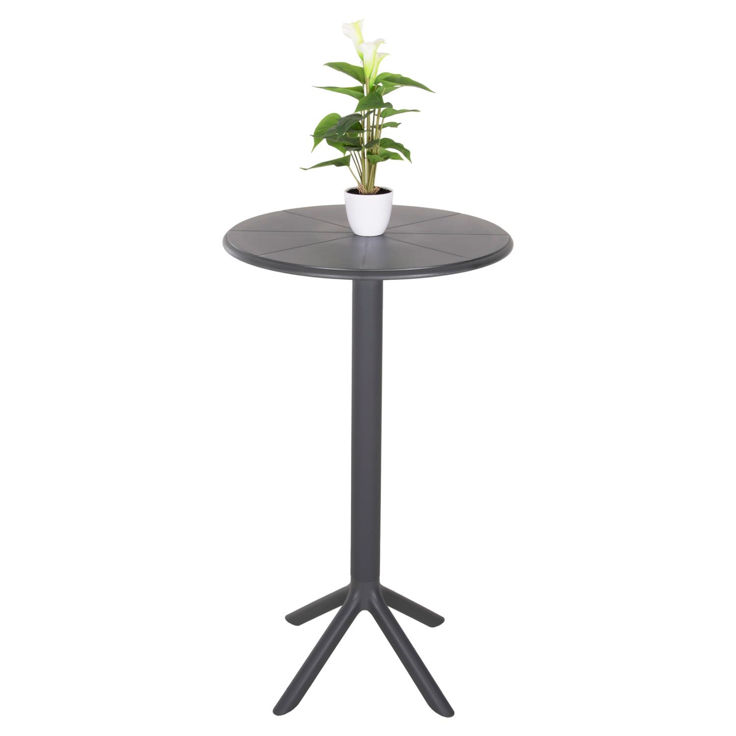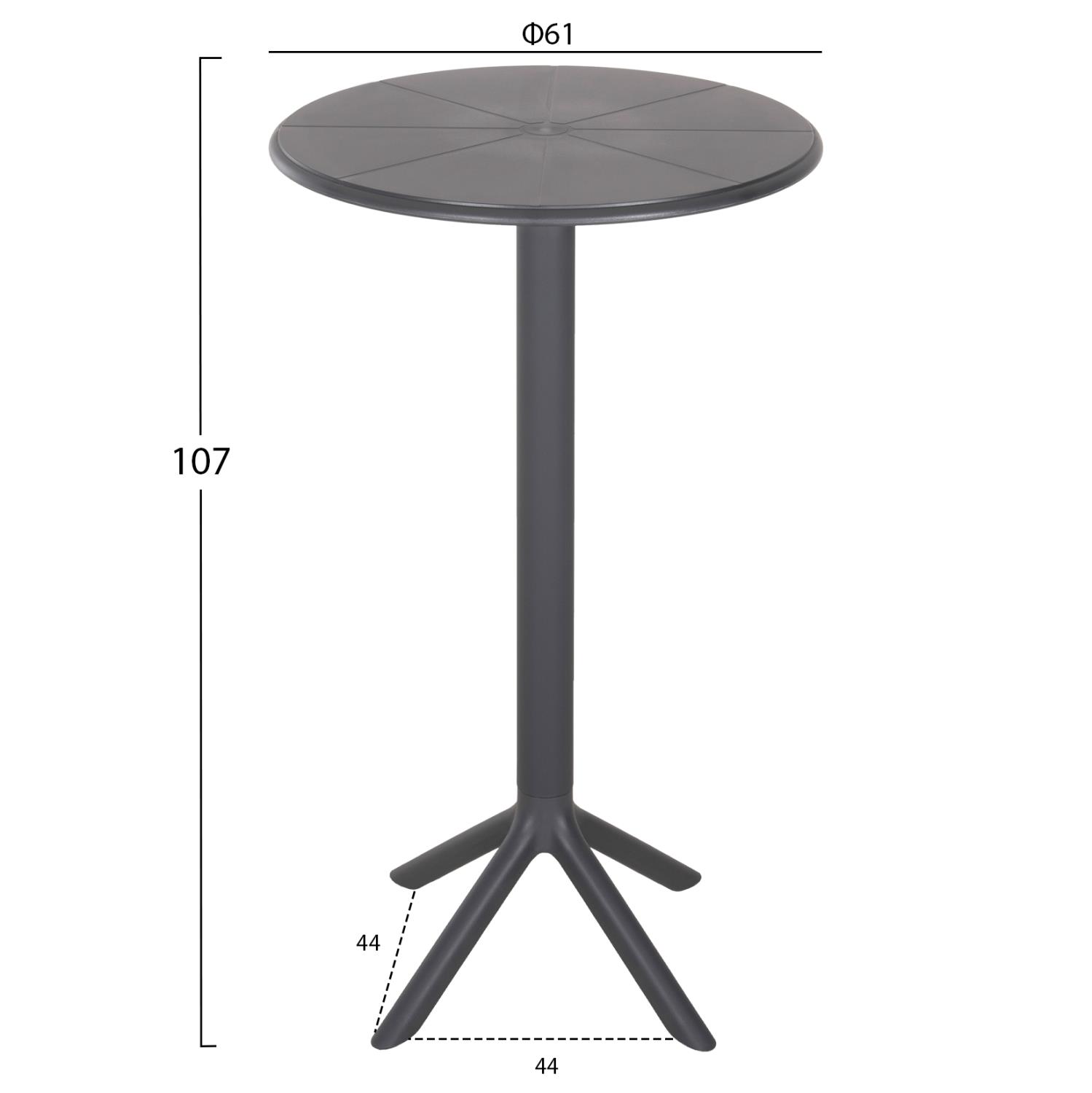 The tall polypropylene bar table TERRIN in GREY color is the ideal proposal for use in outdoor spaces, whether professional (mainly) or for the home. The table is round, supported by a central column ending in 4 legs.