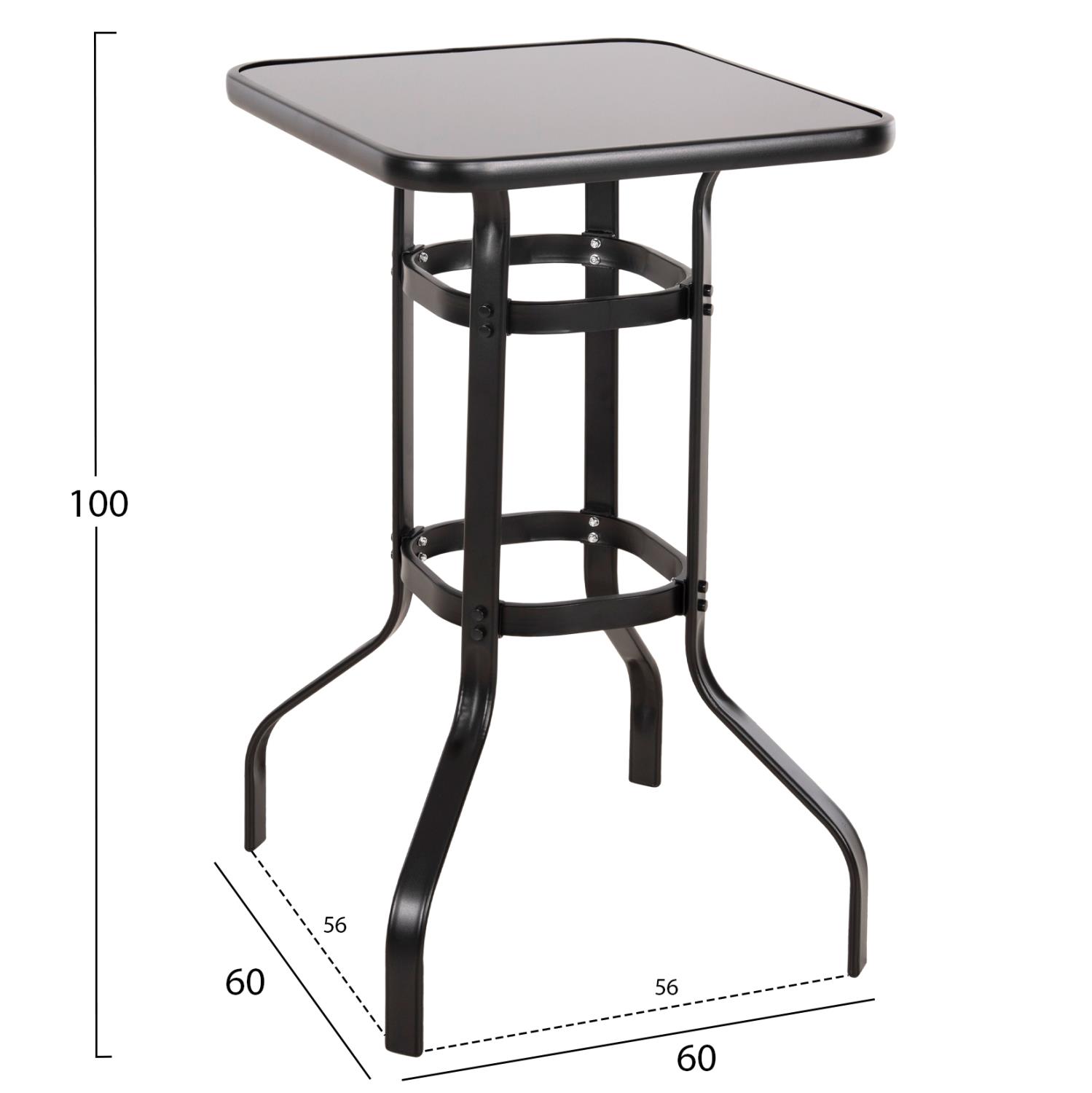 ΤΡΑΠΕΖΙ ΜΠΑΡ ΤΕΤΡΑΓΩΝΟ FIGGY  ΜΕΤΑΛΛΙΚΟ ΜΑΥΡΟ-ΓΥΑΛΙ ΑΣΦΑΛΕΙΑΣ 60x60x100Υεκ