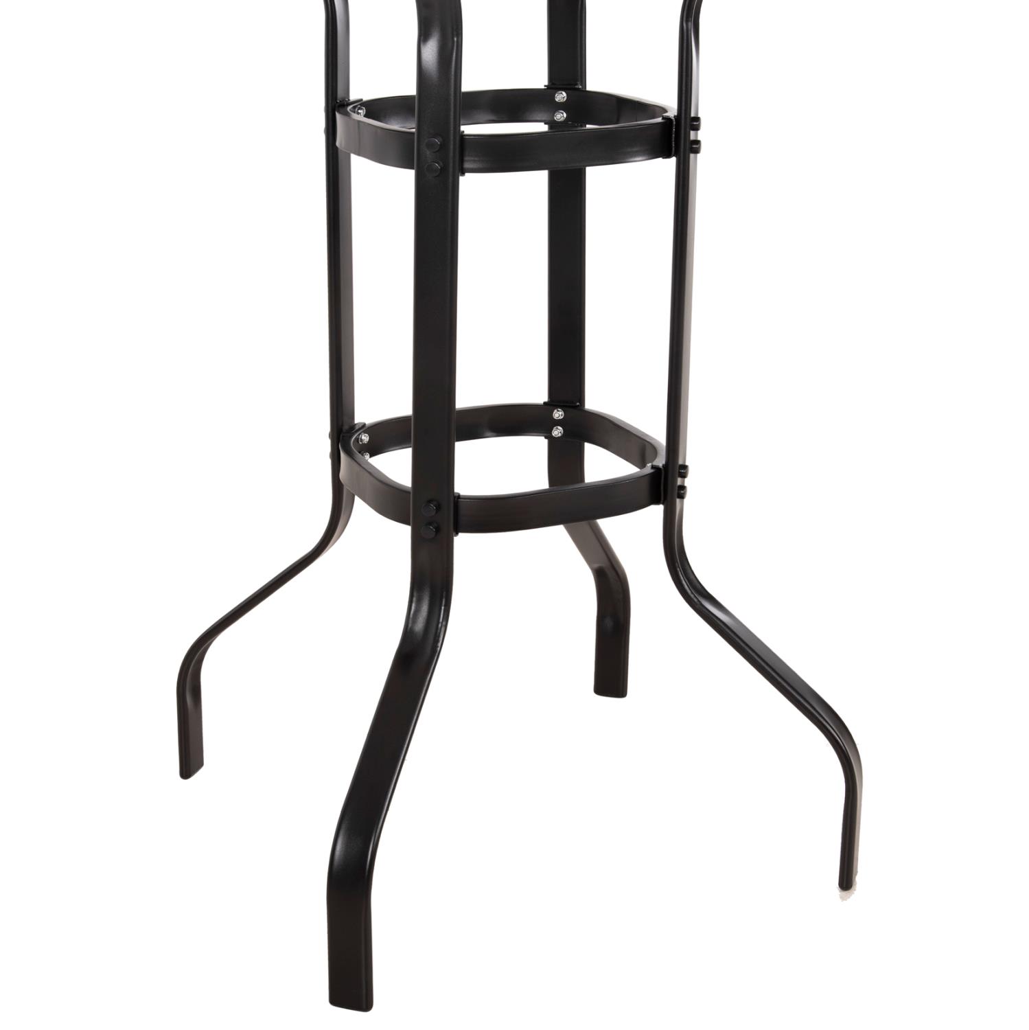 The FIGGY outdoor bar table in BLACK color is square with rounded corners and curved legs. This is a very sturdy and durable table with a tempered glass top and two “rings” which connect the legs. This table will satisfy even the most demanding customers.