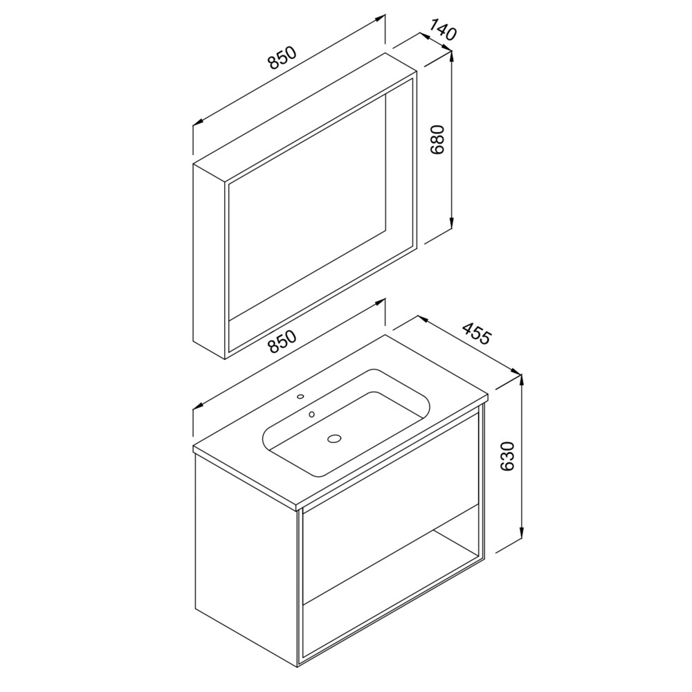 Washbasin: Width: 85 cm. / Depth 45.5 cm.