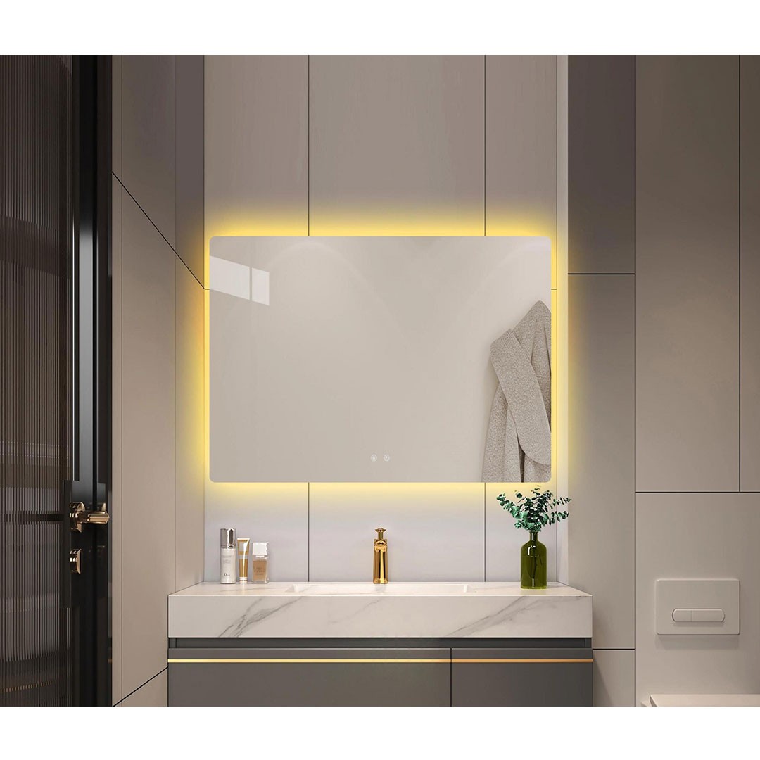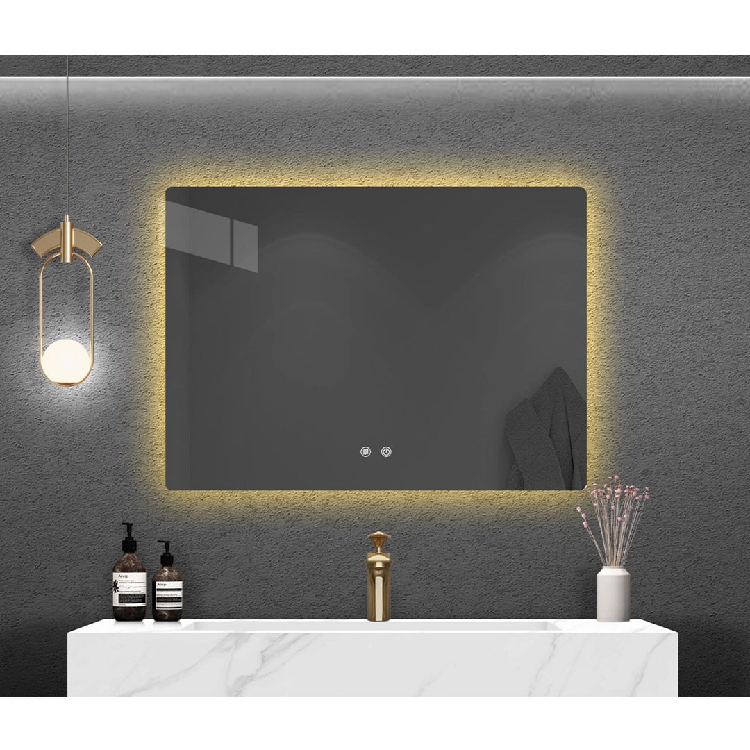 Discover the L-02 LED bathroom mirror, in a rectangular design, a modern mirror that incorporates LED lighting behind its perimeter, offering brightness and a pleasant atmosphere in your bathroom. But it doesn't stop there! The L-02 LED bathroom mirror features a dimmer for adjustable lighting intensity, the ability to choose between three color temperatures, with cold (6500K), neutral (4000K) and warm white (3000K) color as well as the ability to anti-glare function and all this using touch switches - touch functions directly from the front of the mirror.