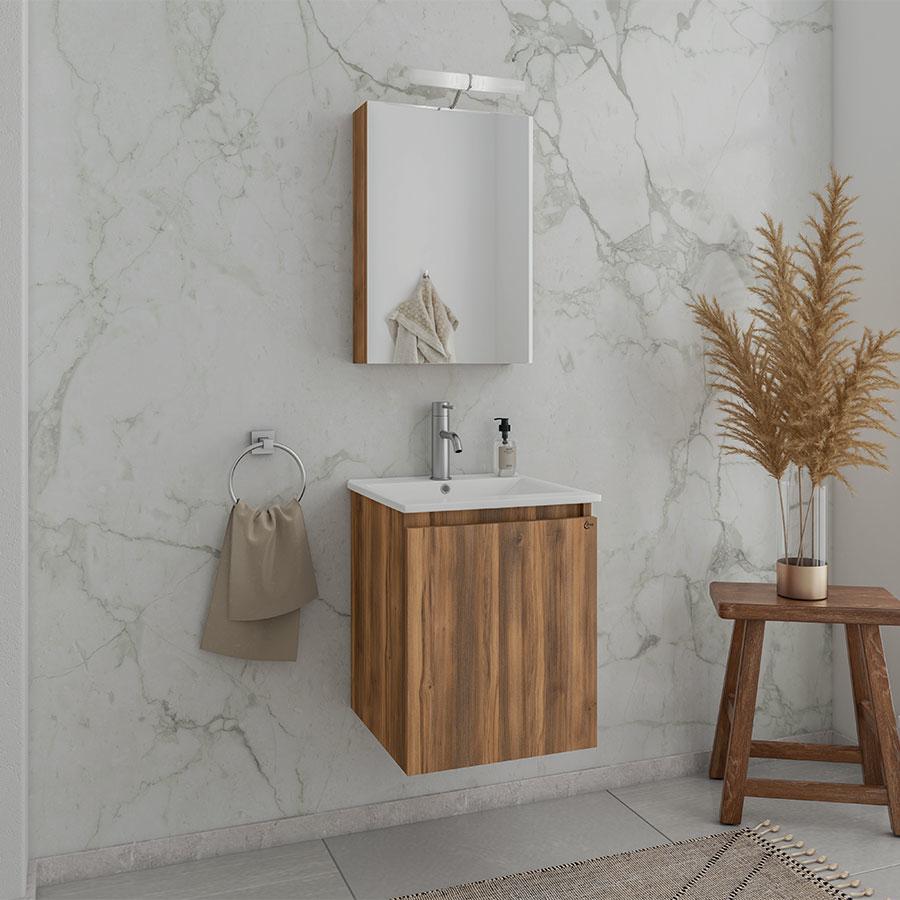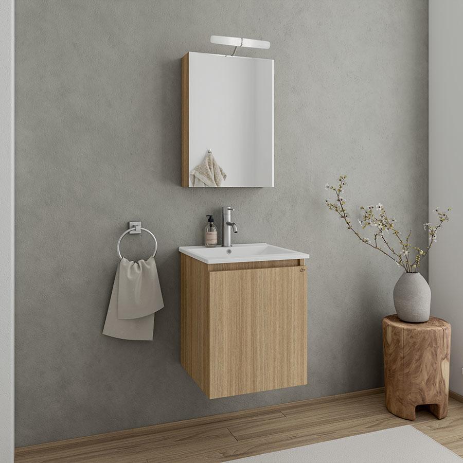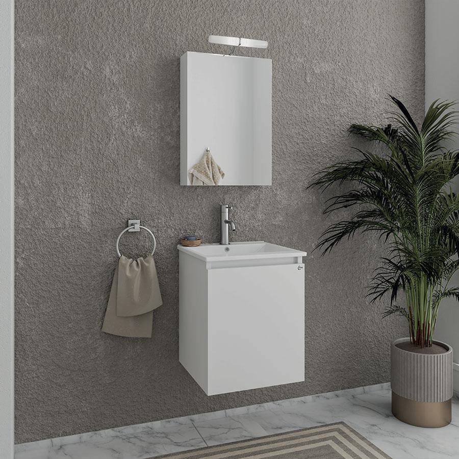 The Bathroom Set Drop Verona 40 is aimed at those seeking a bathroom fixture that combines aesthetics, functionality, and space-saving design. Its wall-mounted base further enhances the set while saving floor space.