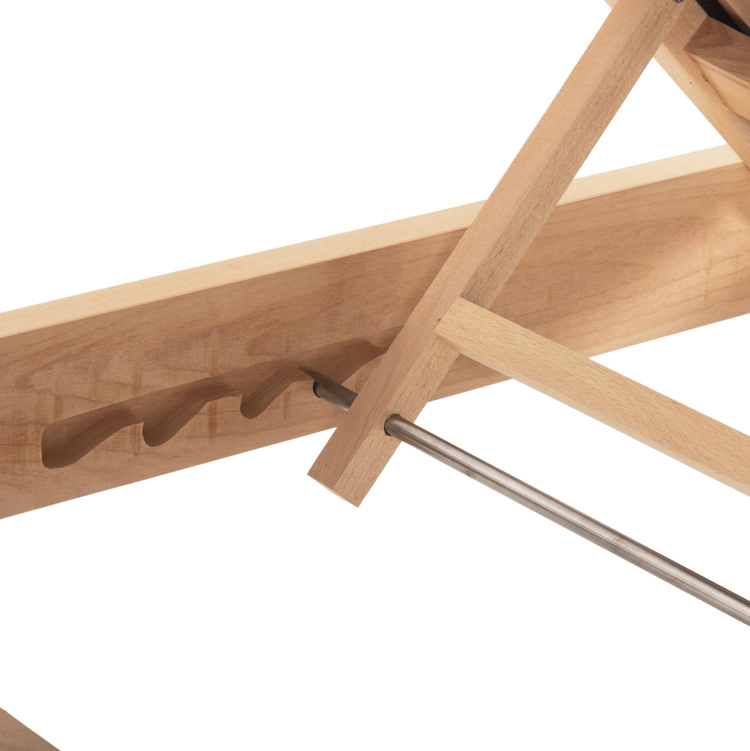 The entire deckchair is made of beech wood. Beech is a hard, strong, elastic, and heavy wood with tiny pores. This wood is elegant and has a reddish-brown color. It is mainly used to make furniture.