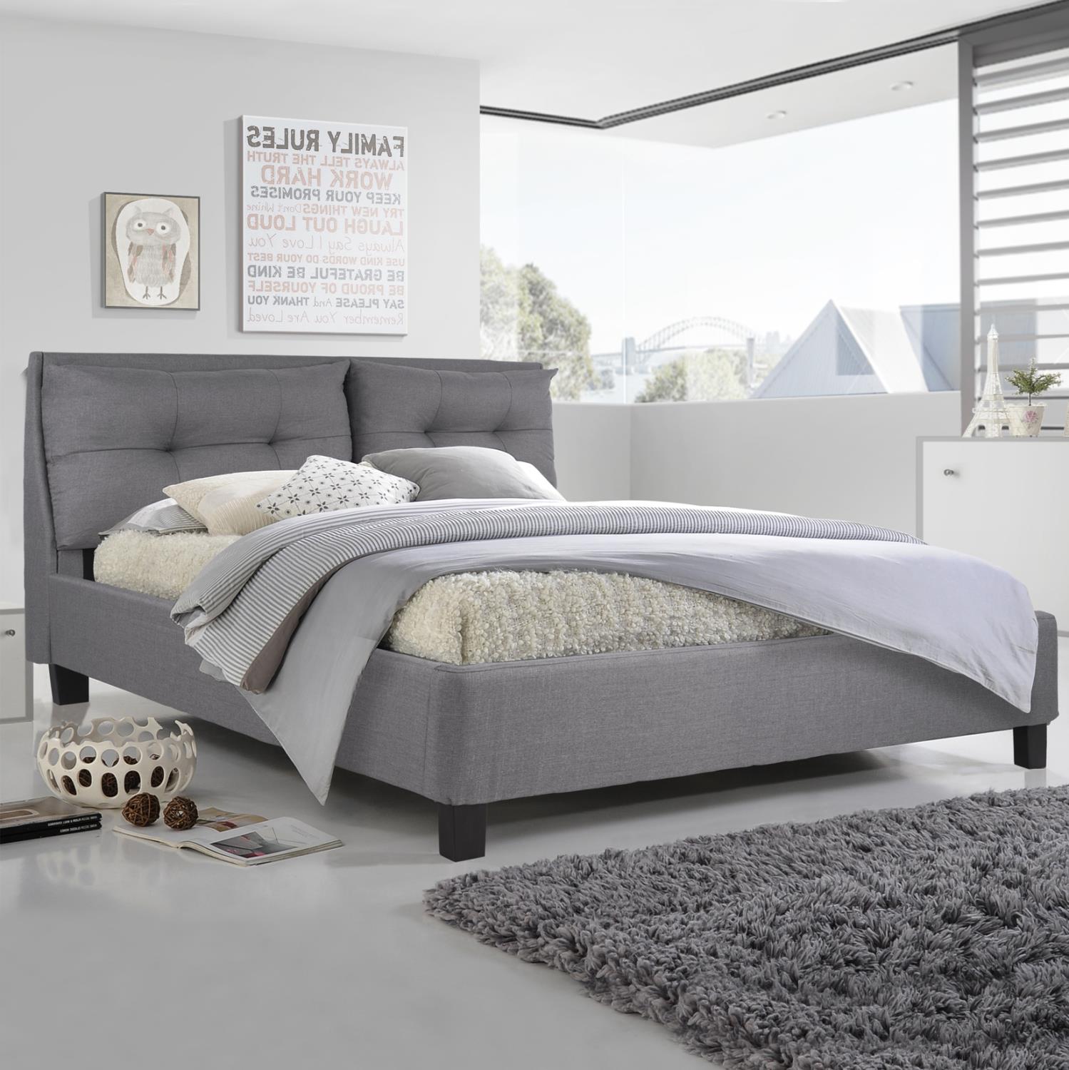 Επενδυμένο κρεβάτι BILLIE Διπλό Ύφασμα Γκρί 160x200 εκ.
