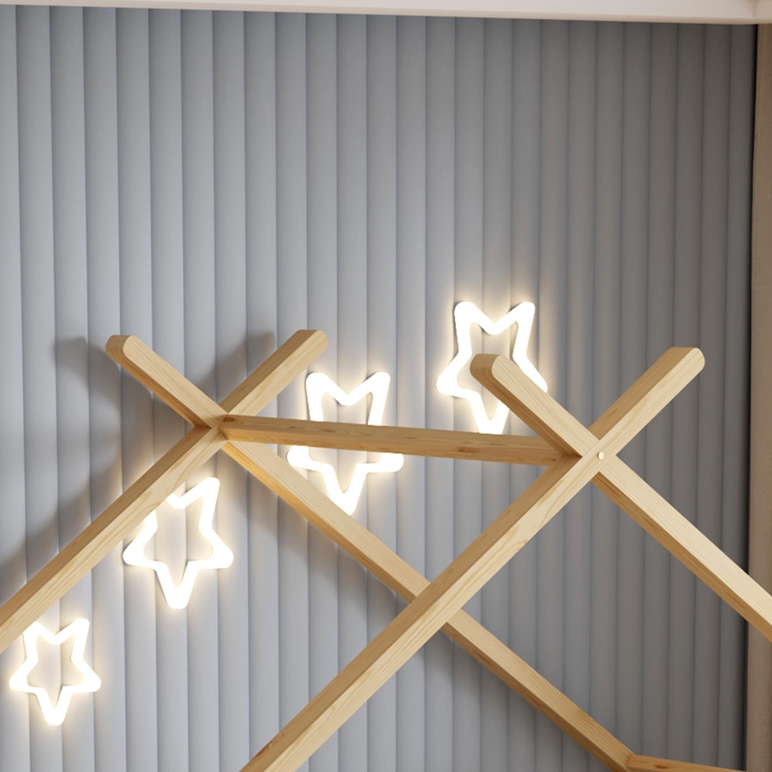 The bed is made entirely of solid pine wood. Pine is a soft, white, or light-yellow wood that is light in weight with straight grain and resists shrinkage, swelling and bending.