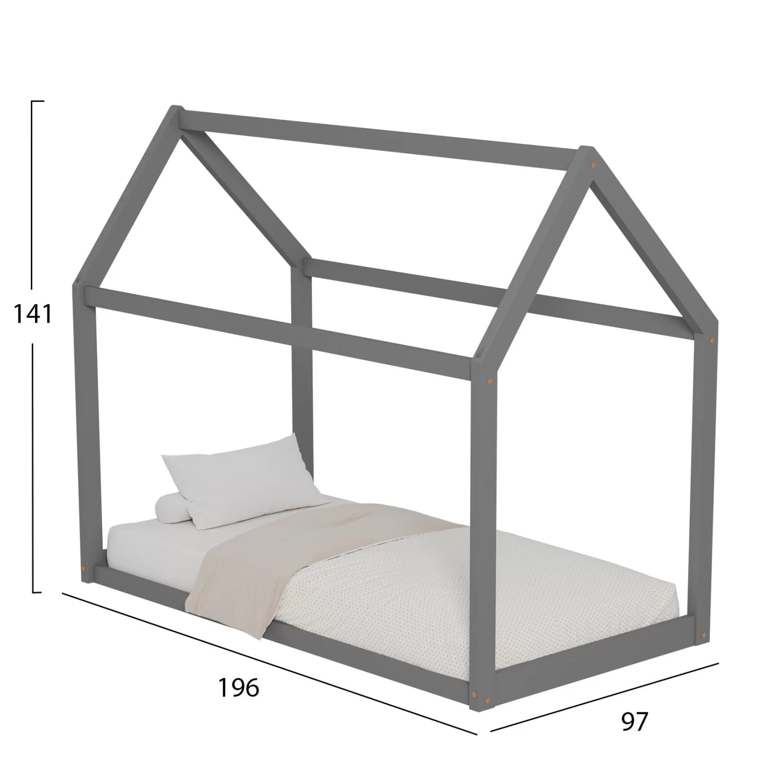 Introducing the new children's bed PEPE. It is small for a mattress 90x190 cm, and is an excellent quality, modern and safe choice for the children's room, since it is designed according to the Montessori educational system, according to which children learn best, when they choose for themselves what to do. The low bed height without legs helps them explore their autonomy and get in and out of bed freely at any time. It is wooden in GREY color painted with harmless water-based varnish and non-toxic, ideal for children. The mattress is placed on boards (slats) made of plywood. The whole bed is in the shape of a house that will give a pleasant, "warm", and playful look to any children's room.