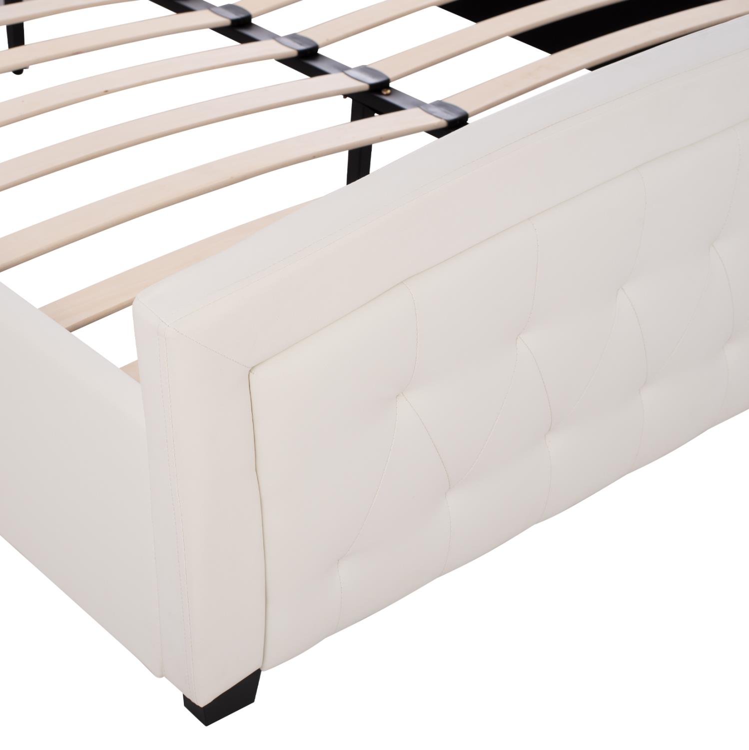 The entire bed is upholstered in high quality PU leather. This is synthetic leather and has a linen texture. Synthetic leather is the evolution of leatherette but with the main characteristic that it is not easily distinguished from real leather. Its composition is basically polyurethane and polyamide micro-fibers in contrast to leatherette which basically contains PVC.