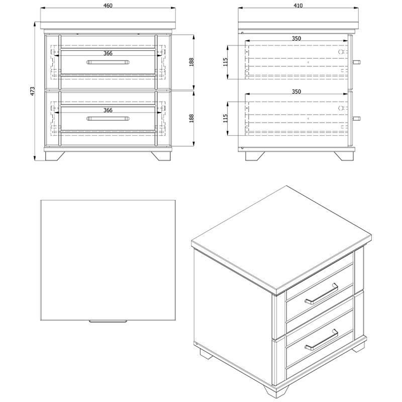 Bedside Table Astor NO1F Grey Oak - White Lacquer 53x35x46 cm