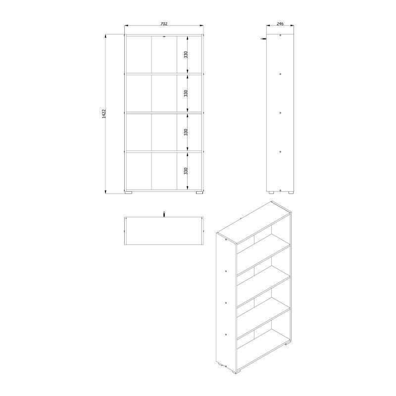 The Tomar 4 bookcase, in a warm artisan oak shade, is a piece specially designed to accommodate and organize books or other decorative objects. It has a functional shelving arrangement, featuring 4 shelves in total, convenient for facilitating access to books and reading. The design of the bookcase adds elements of decoration and aesthetics to the room or office space where it is located.