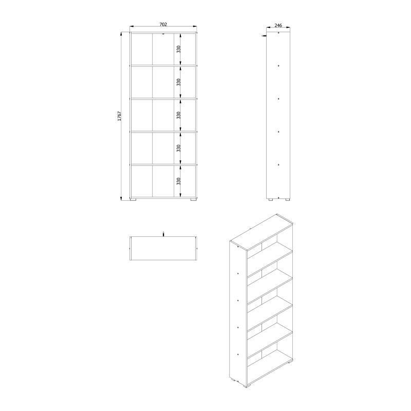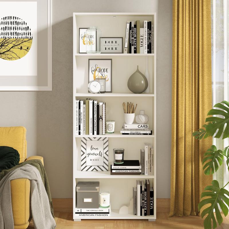 The Tomar 5 bookcase, in a bright white shade, is a piece specially designed to accommodate and organize books or other decorative objects. It has a functional shelving arrangement, with five shelves in total, convenient for facilitating access to books and reading. The design of the bookcase adds elements of decoration and aesthetics to the room or office space where it is located.