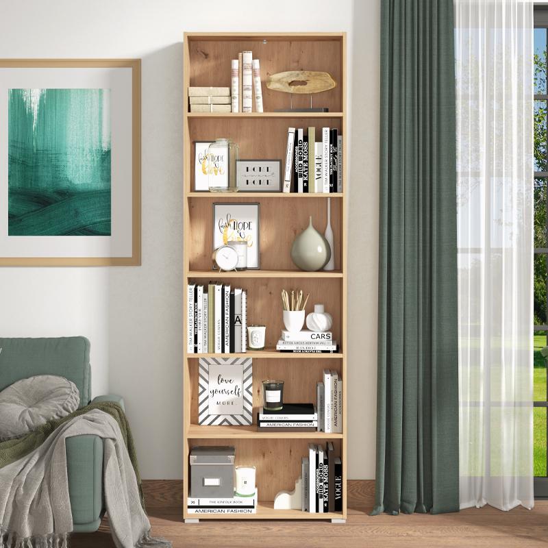 The Tomar 6 bookcase, in a warm artisan oak shade, is a piece specially designed to accommodate and organize books or other decorative objects. It has a functional shelving arrangement, featuring six shelves in total, convenient for facilitating access to books and reading. The design of the bookcase adds elements of decoration and aesthetics to the room or office space where it is located.