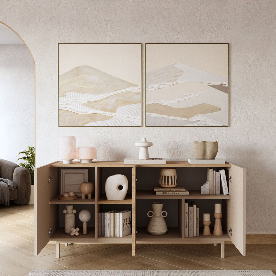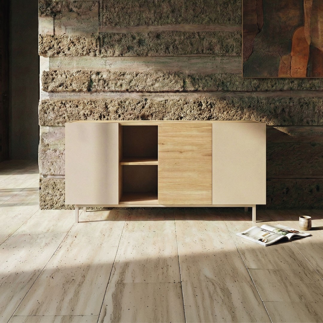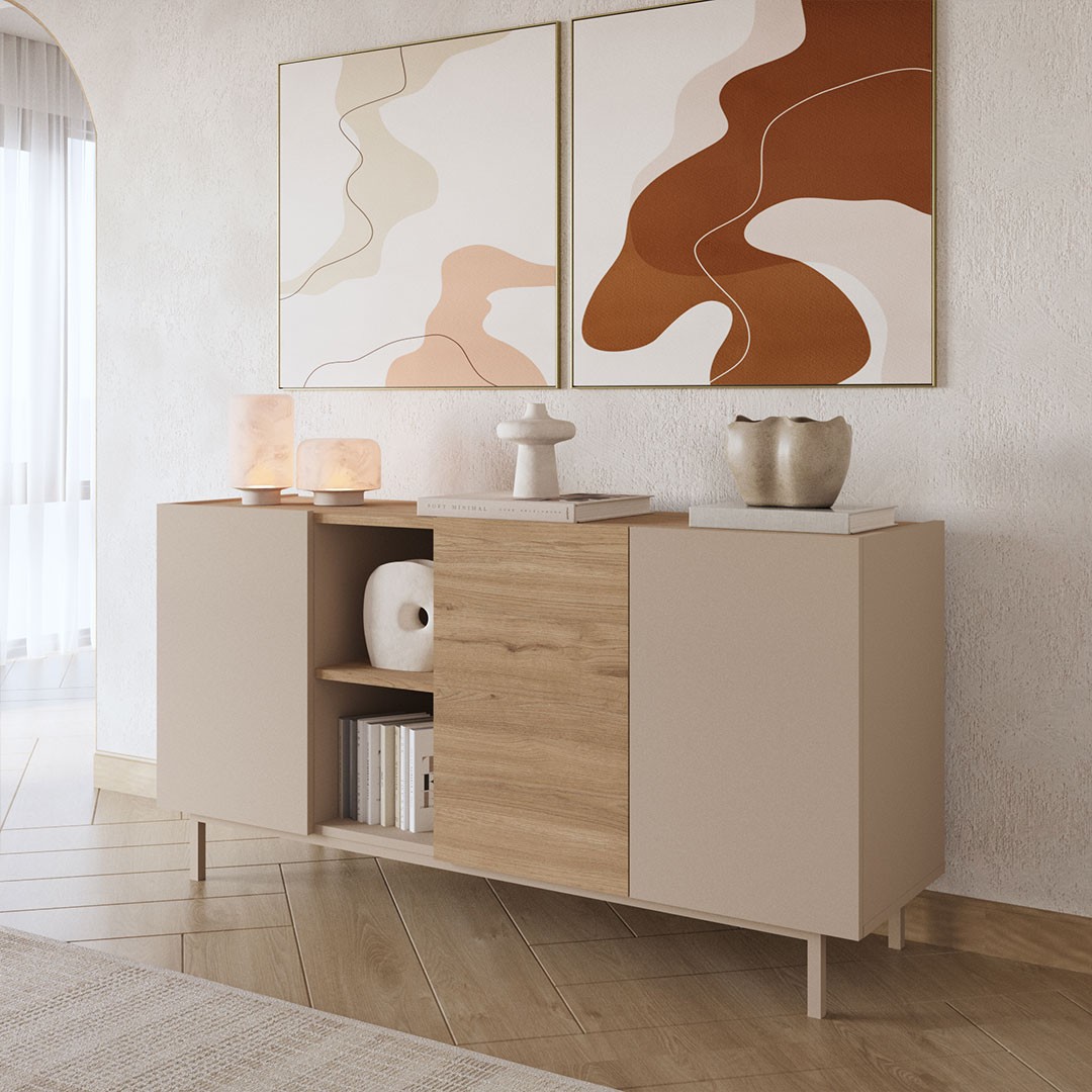 Elegance is hidden in the details and functionality in the right design. The SEDRA 150 sideboard-console is a modern and versatile proposal that can be placed both in the living room and in the entrance or dining room, offering practical storage solutions with high aesthetics. The combination of the wooden oak shade combined with the cashmere color creates a warm and balanced effect that fits ideally in any modern space.
